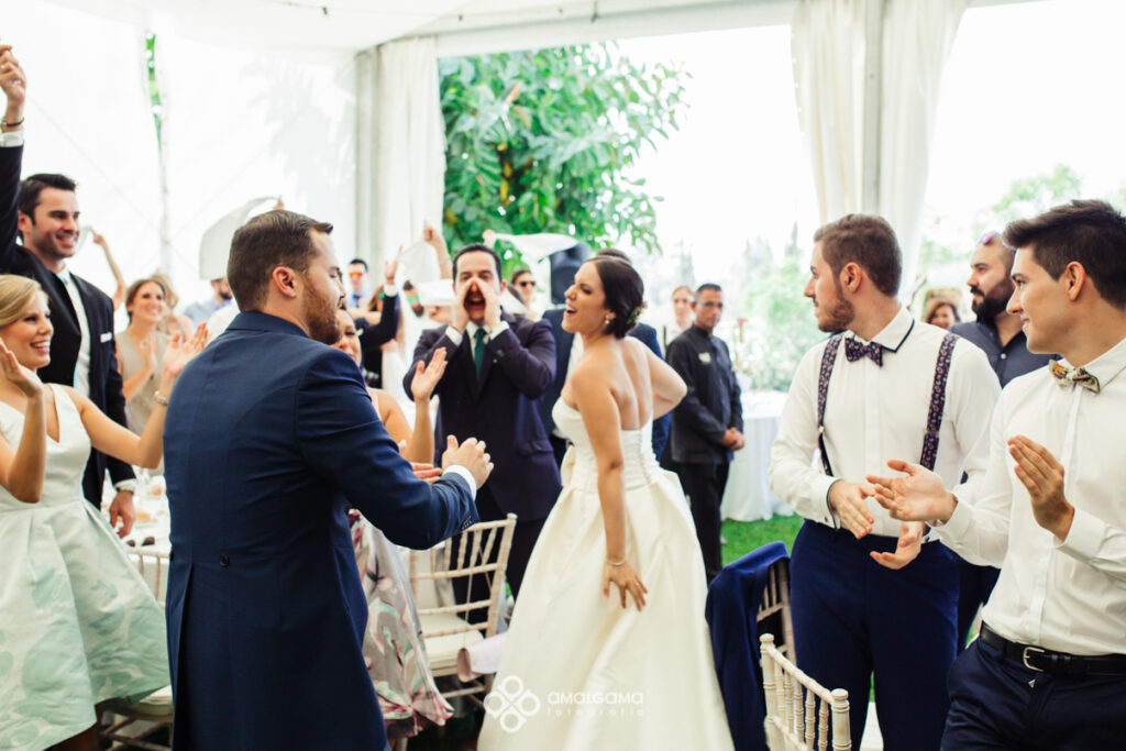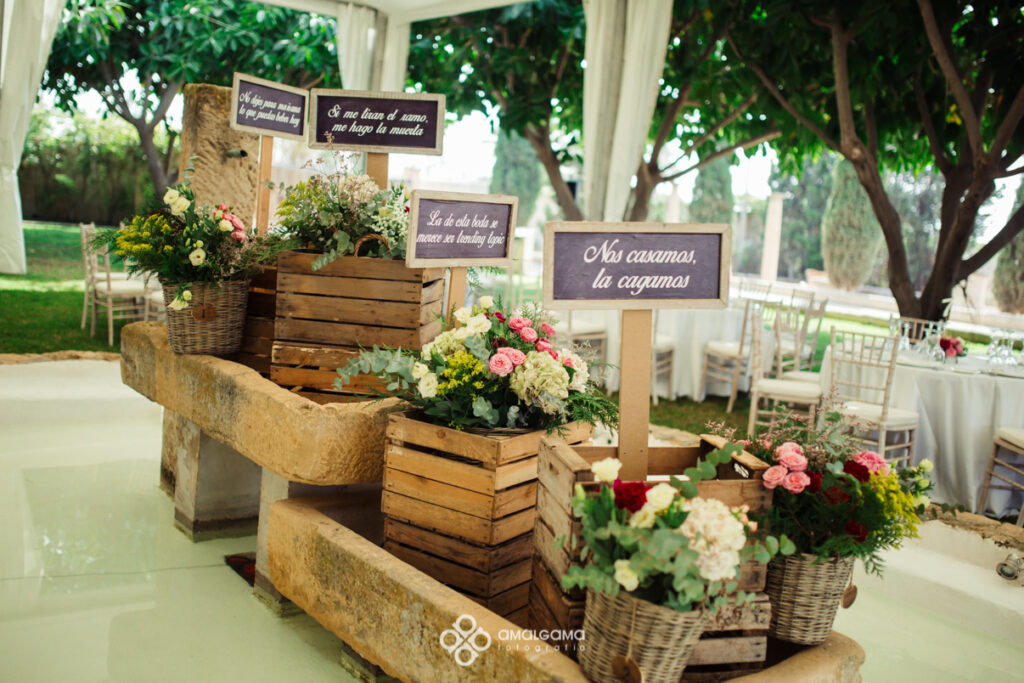 Los invitados disfrutaron de una comida servida por el catering ya en el Hort del Kalausi, decorado por la floristería de Valentina, un convite con multitud de sorpresas y mucha marcha.