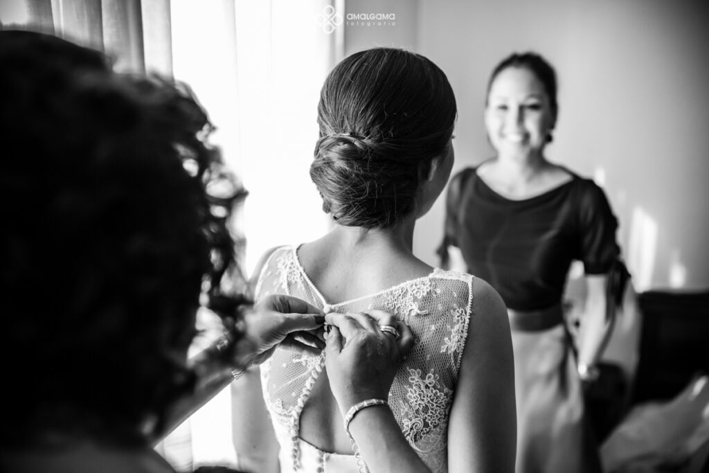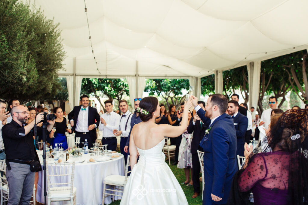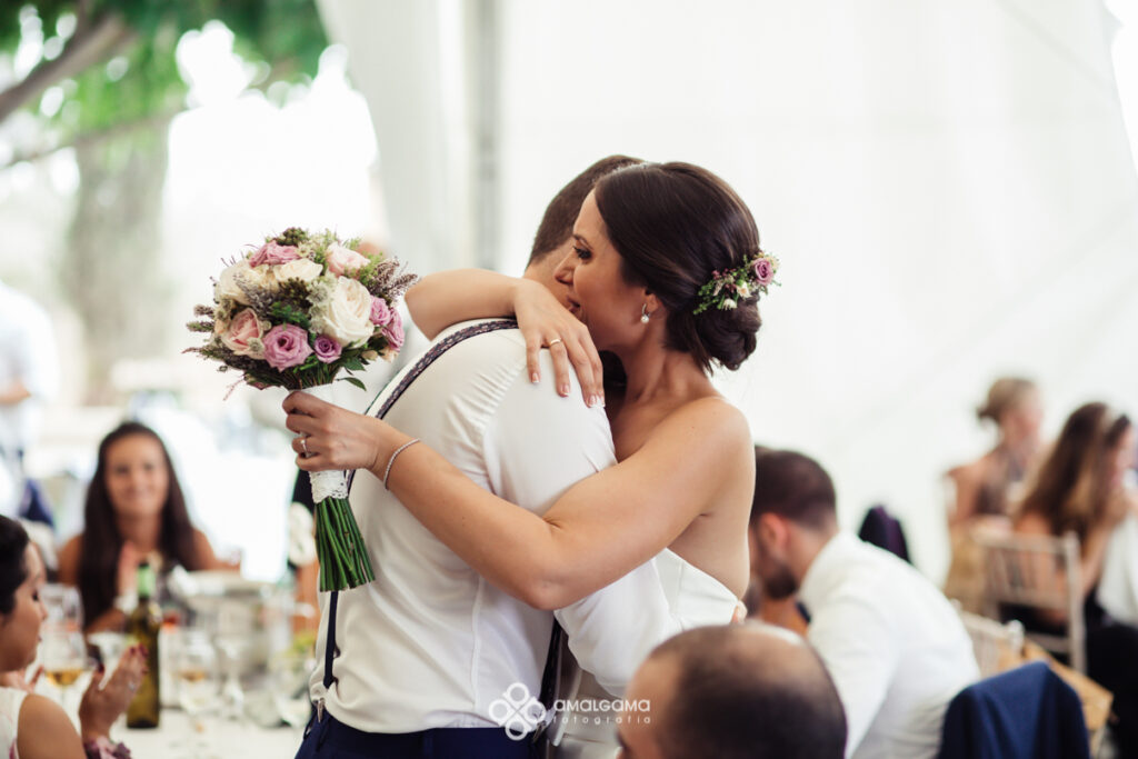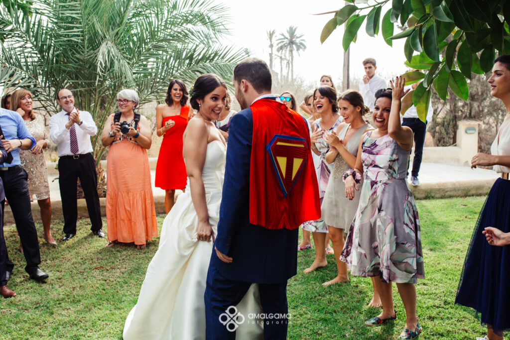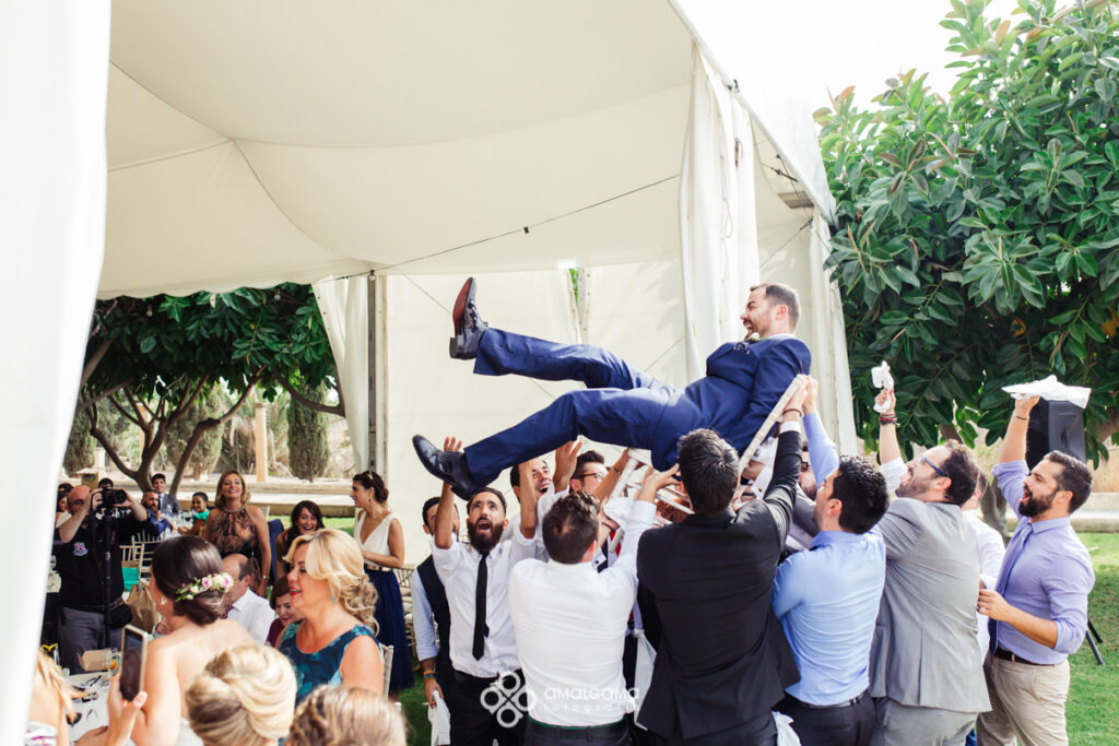 Alfonso y Desi se casaron en la Iglesia Sagrado corazón de Jesús y el convite lo celebraron en la preciosa finca el Hort del Kalausí. En casa de Alfonso como se refleja en las fotos todo era fiesta y felicidad y muchas ganas de boda. Con Desi nos encantó trabajar, súper dispuesta y entregada y muy bien acompañada por su familia y sus damas de honor.