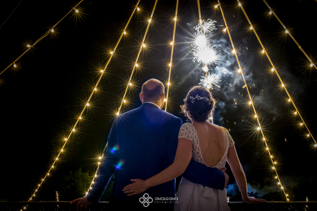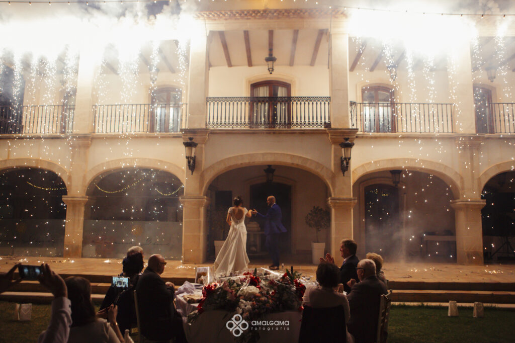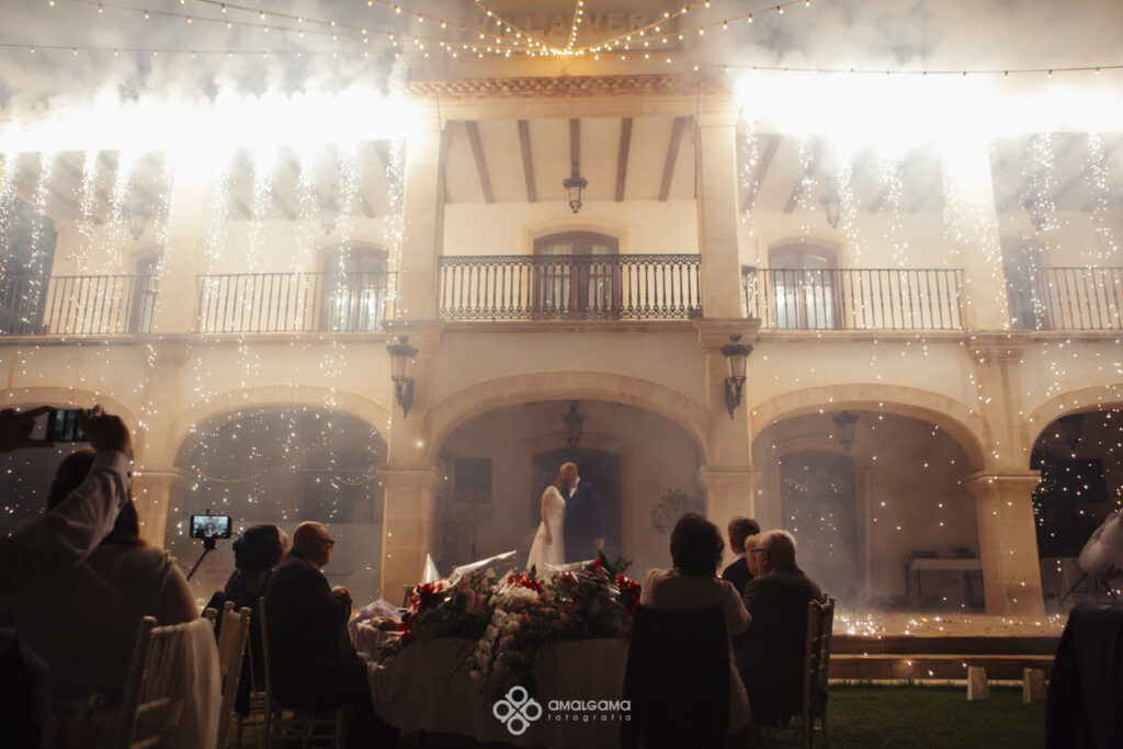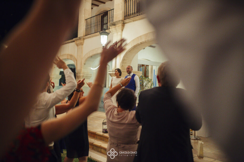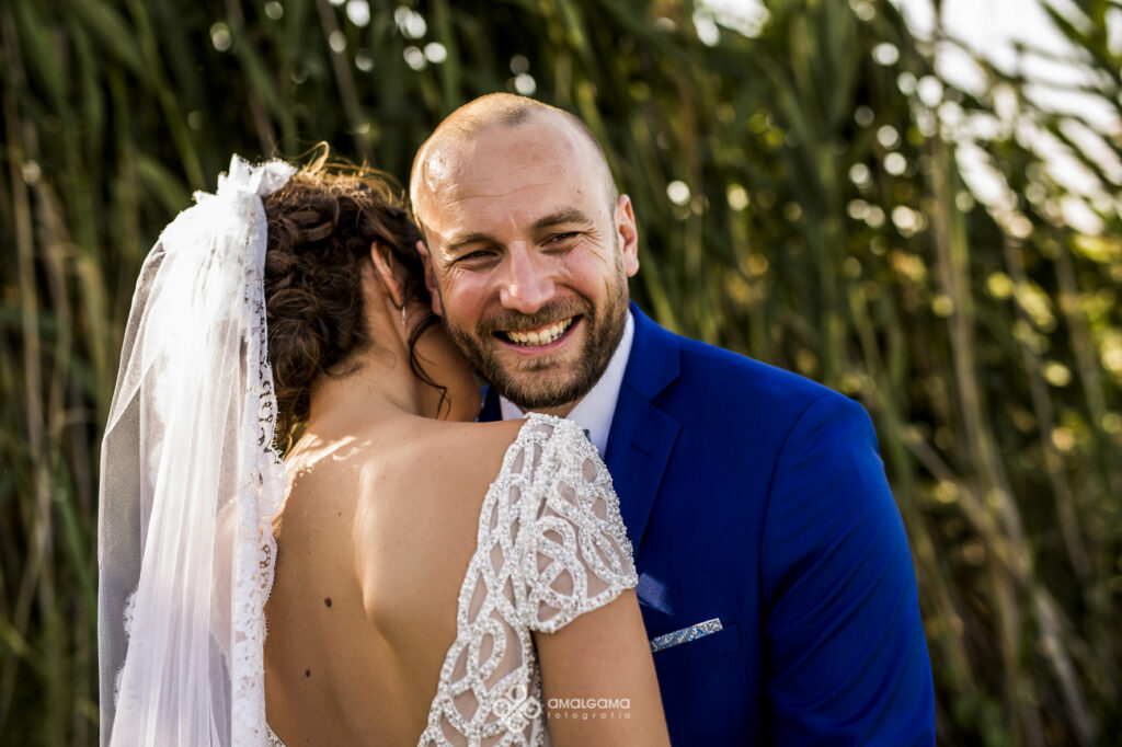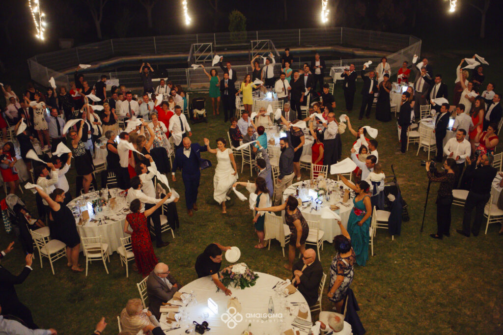 Una vez en Finca Villa vera los novios hicieron su entrada bajo una fila de globos azules que los invitados fueron soltando a su paso. La novia sorprendió al novio con un baile muy especial acompañada por un caballo. Una velada bajo la luz de las verbeneras de este precioso lugar que compartieron hasta altas horas.