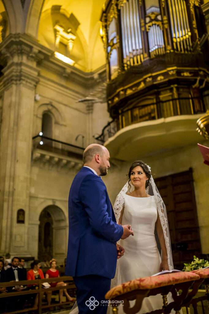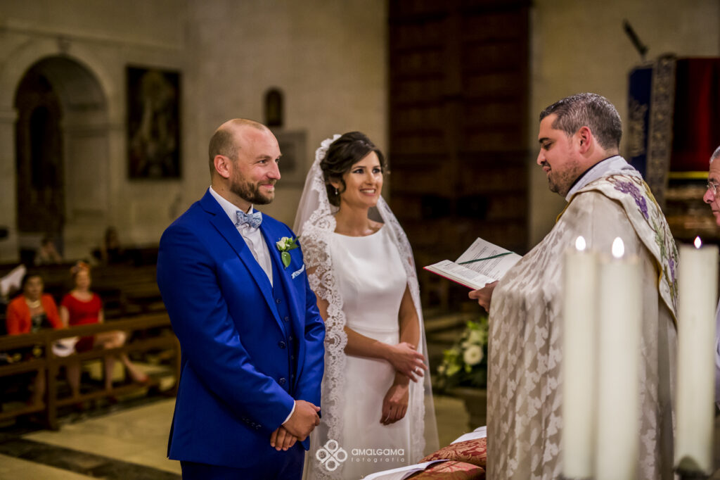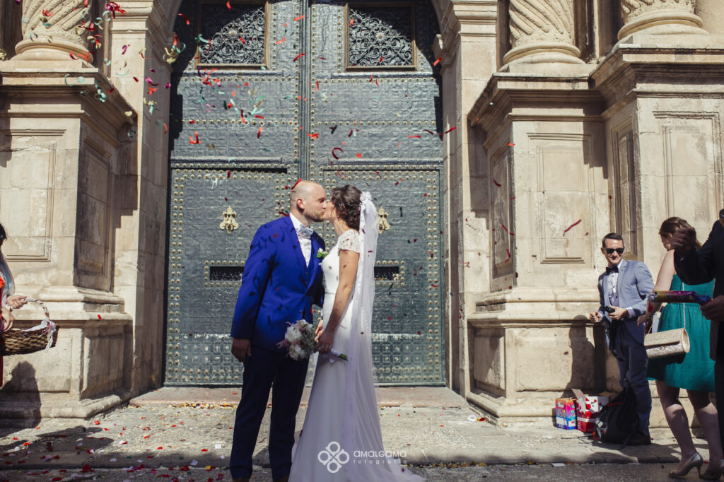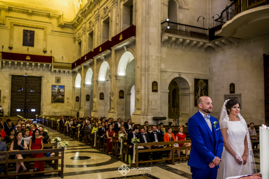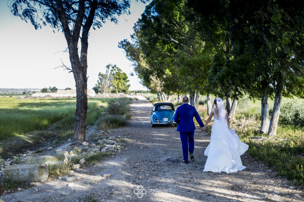 Antoine y Lorena. Pequeño resumen de la boda de esta pareja de guapos. El novio se vistió junto con sus amigos y familia en el Hotel Huerto del Cura. Lorena preciosa vestida de Pronovias llegó a la ceremonia en un escarabajo wolsvagen azul. Una preciosa ceremonia celebrada en la Basílica de Santa María de Elche,