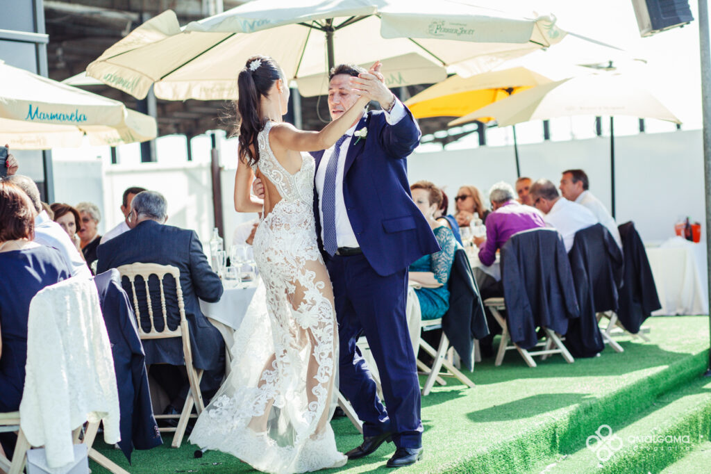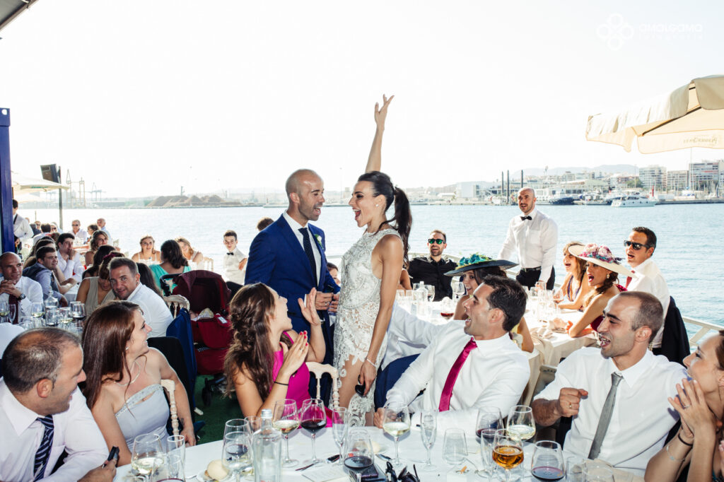 El convite tuvo lugar en la discoteca Marmarela, con un catering servido por Juan XXIII. Sin duda un lugar mágico y con unas vistas espectaculares para realizar una boda.