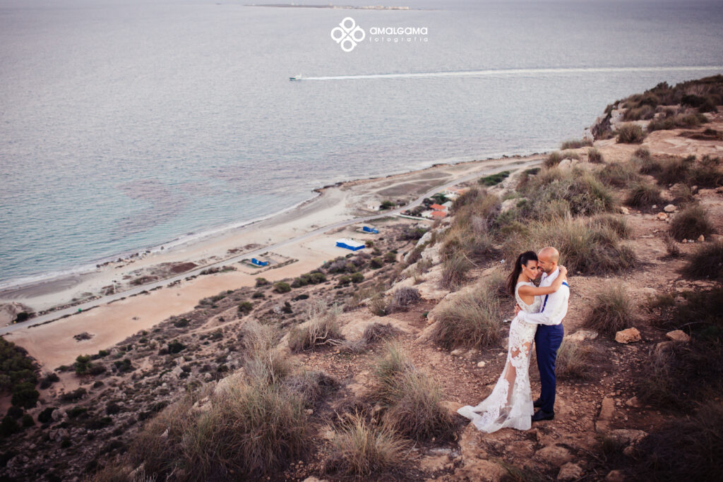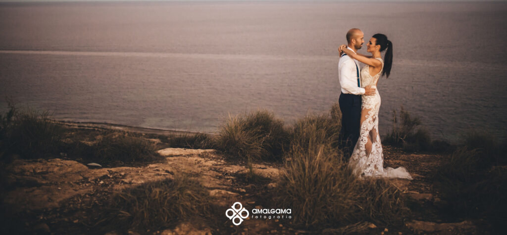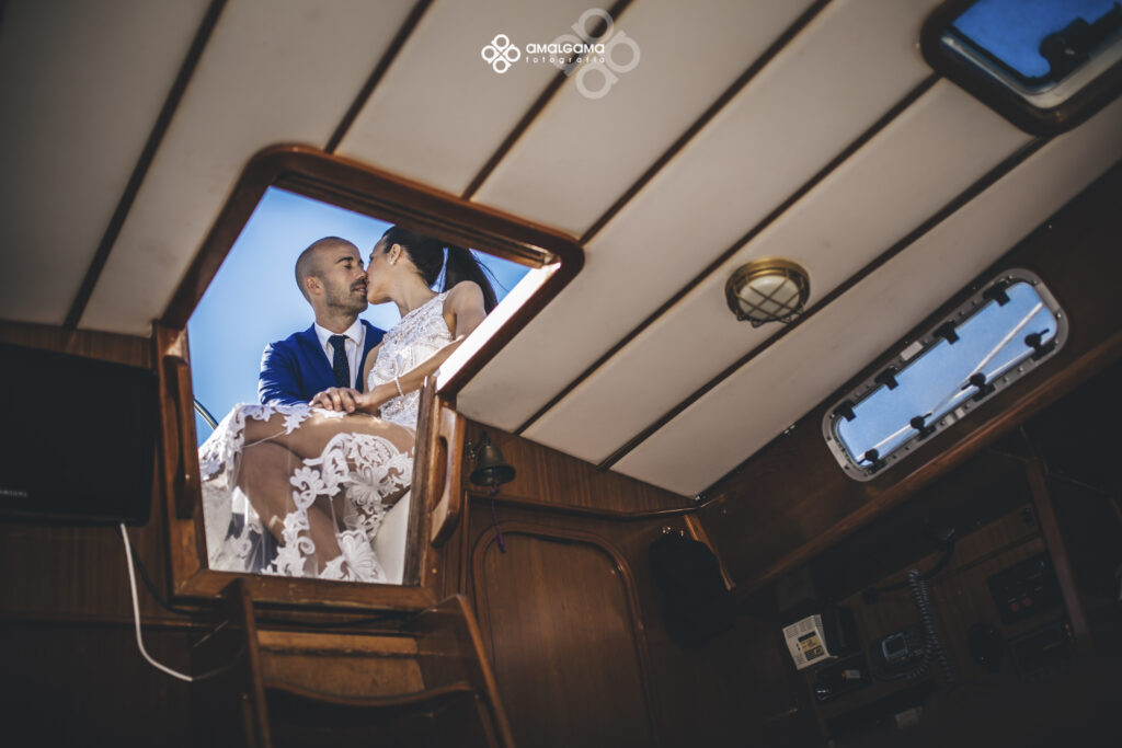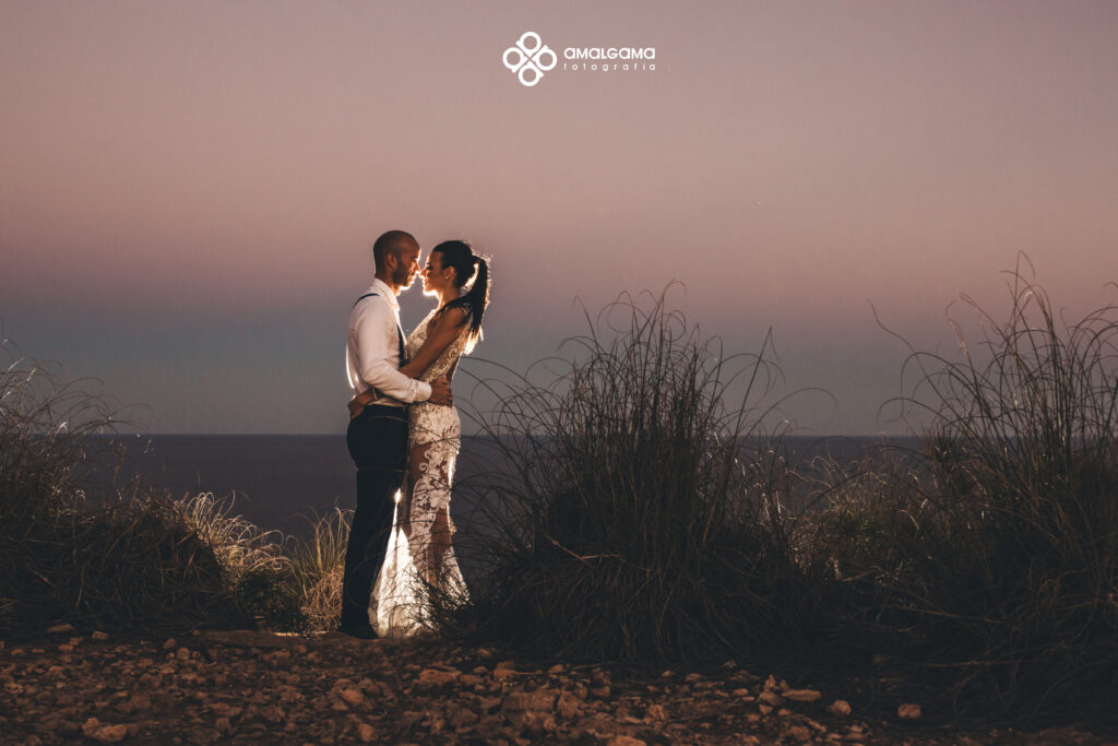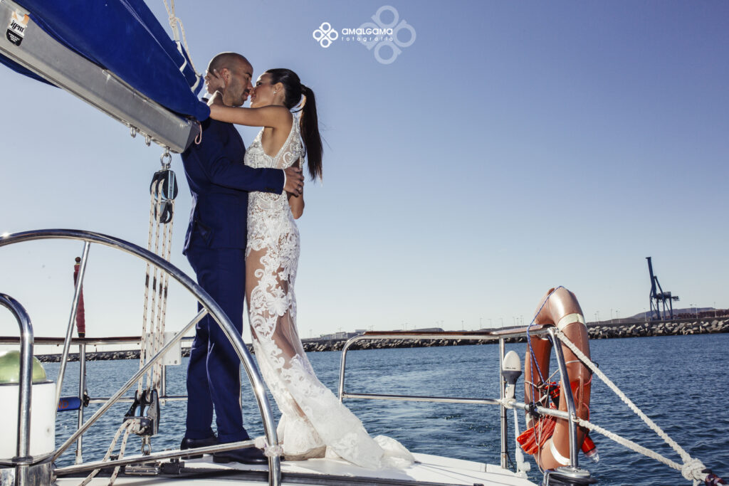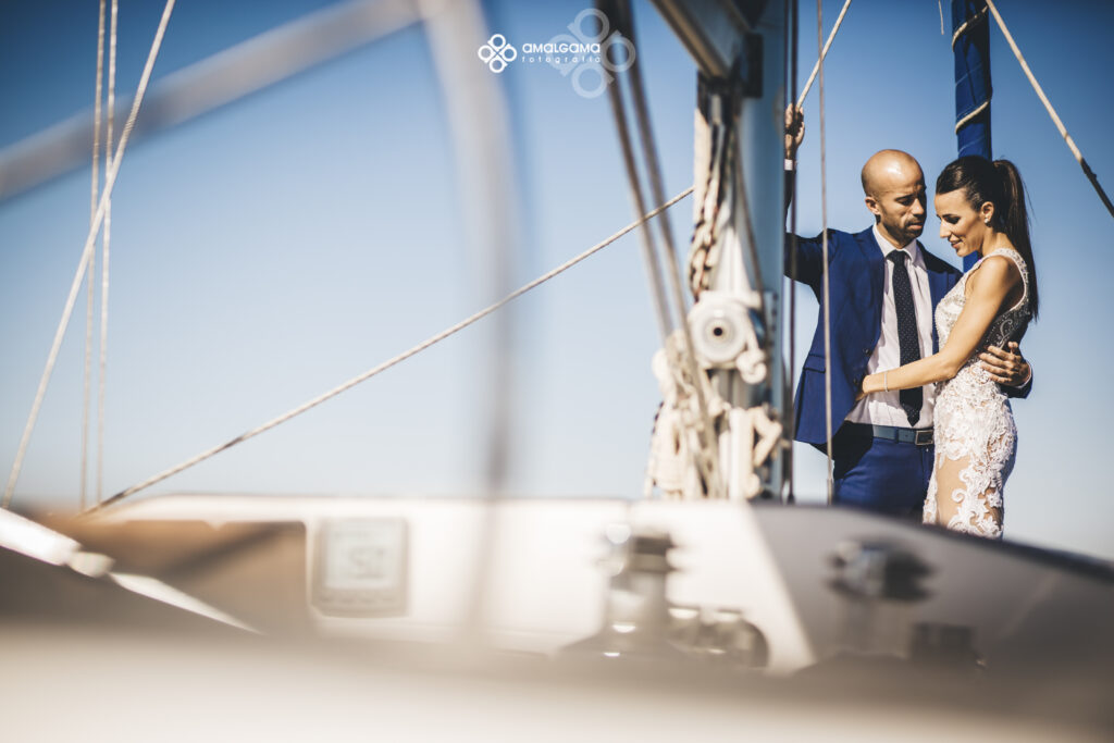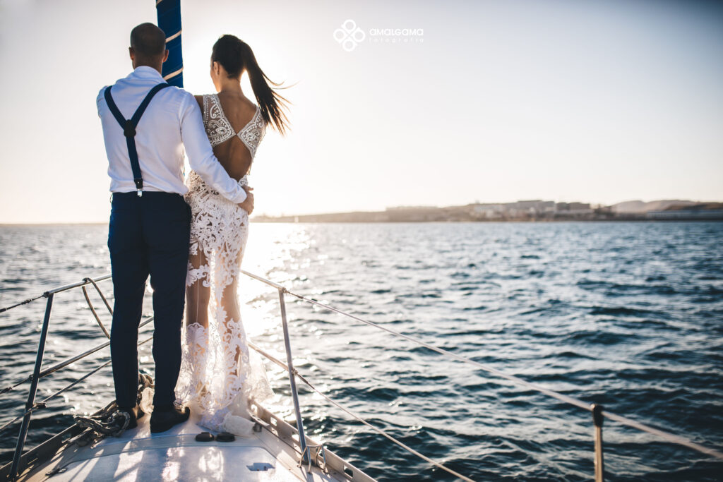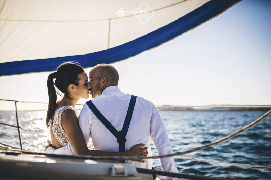 Ya que la boda esta ambientada en zonas cerca del mar no podía faltar un post boda en la playa, para ello recorrimos el mar en un velero donde inmortalizamos momentos tan románticos como estos, para terminar en tierra con un atardecer de cine.