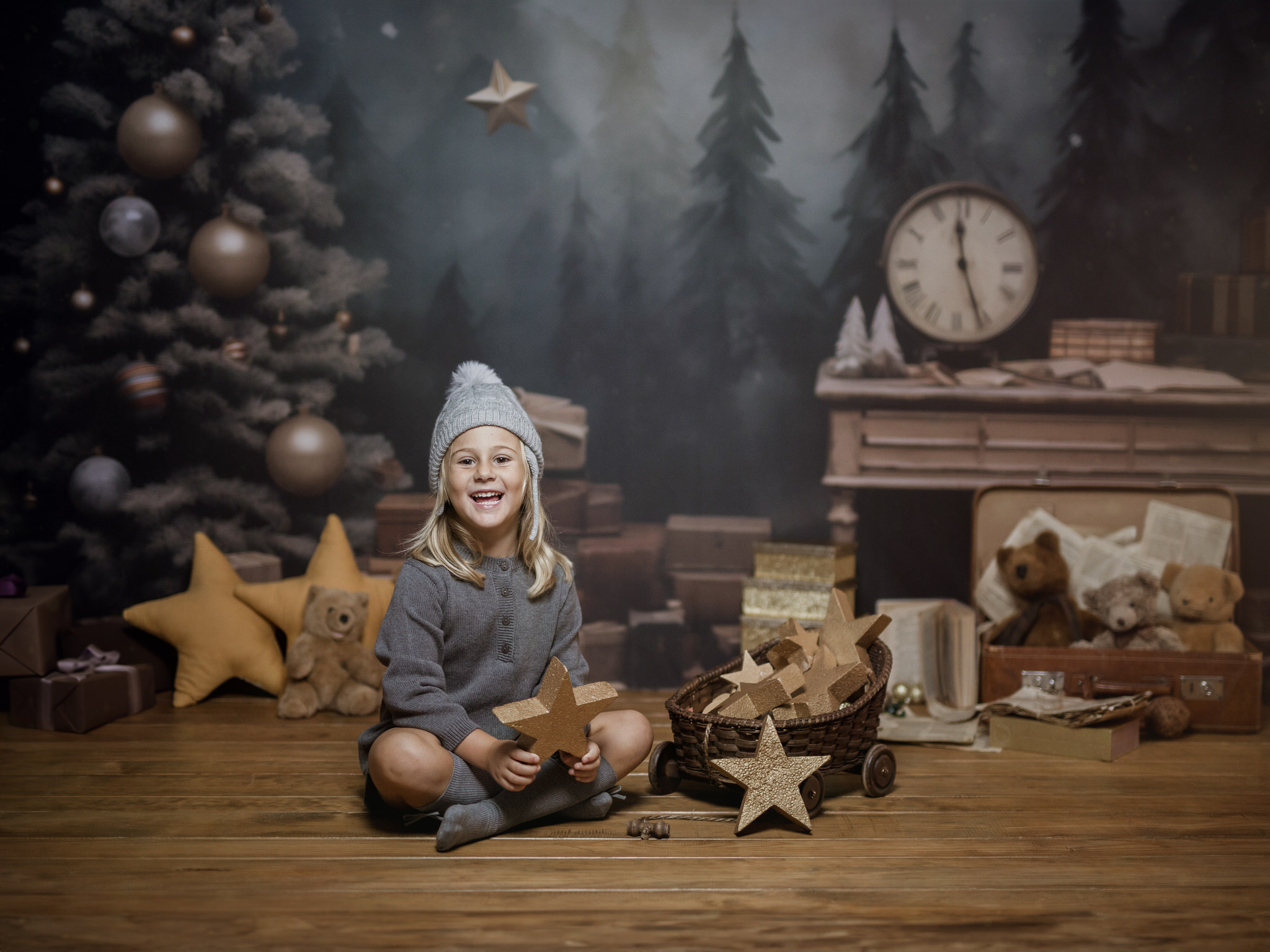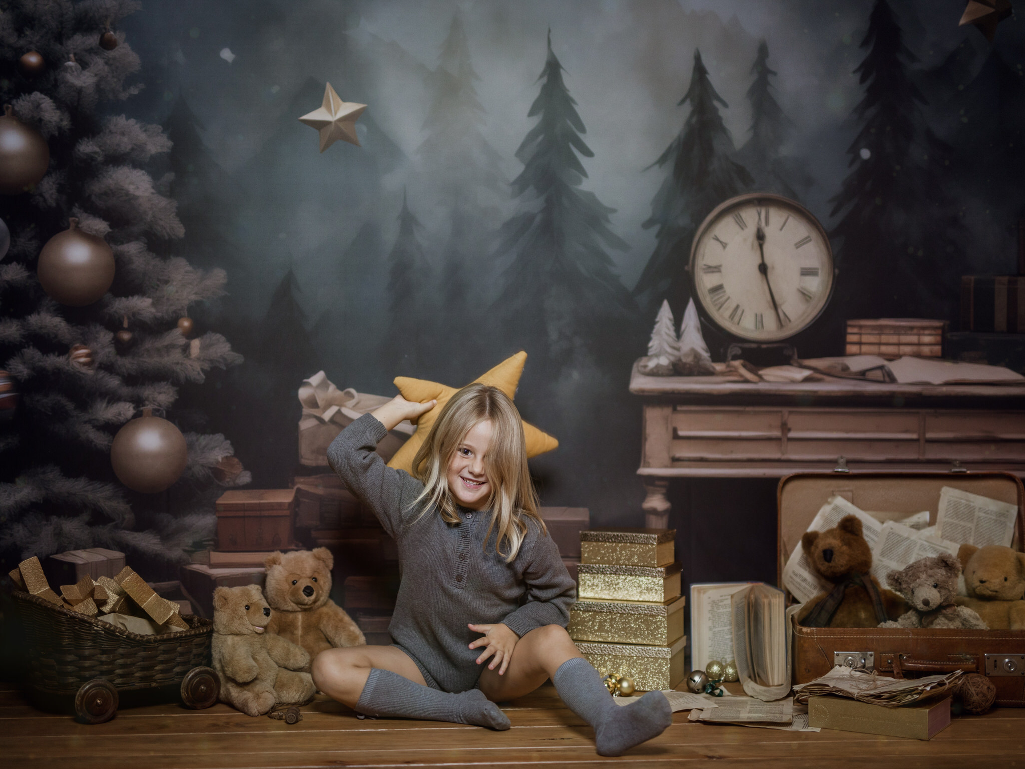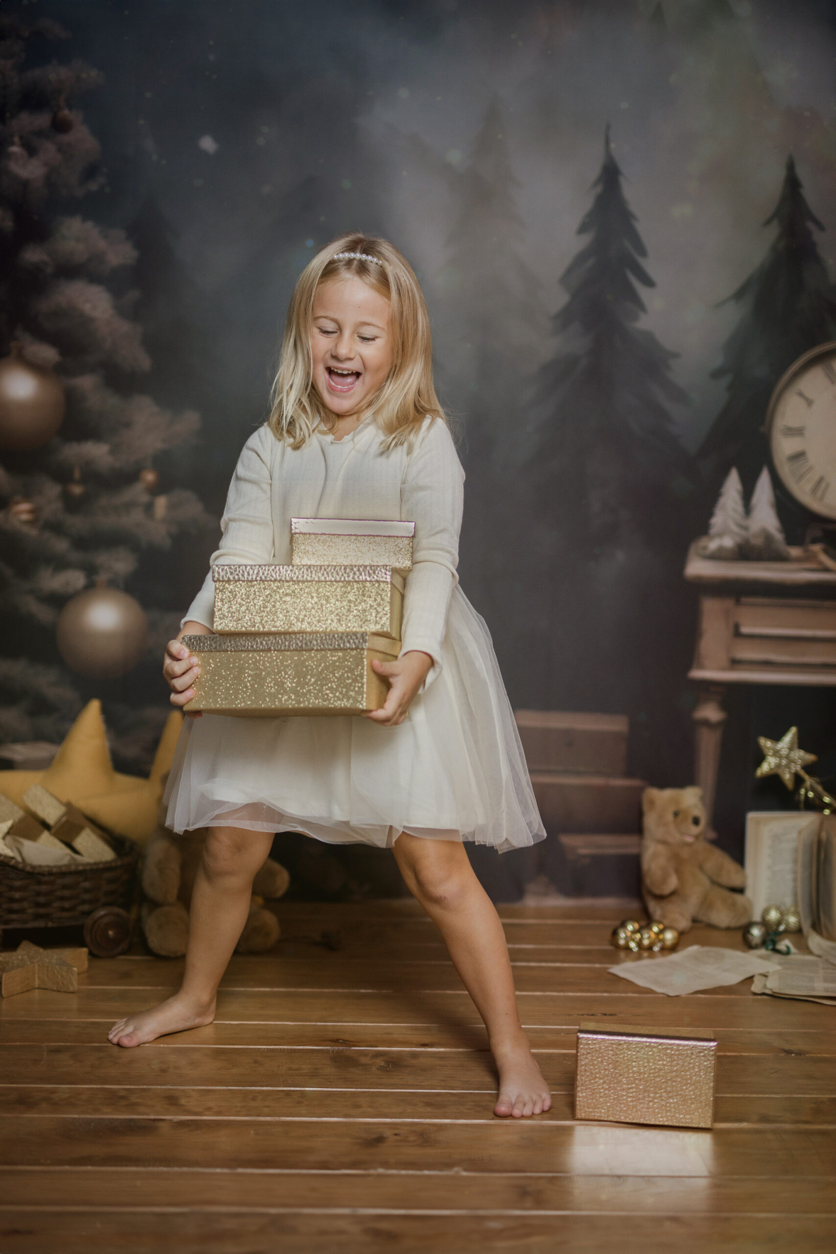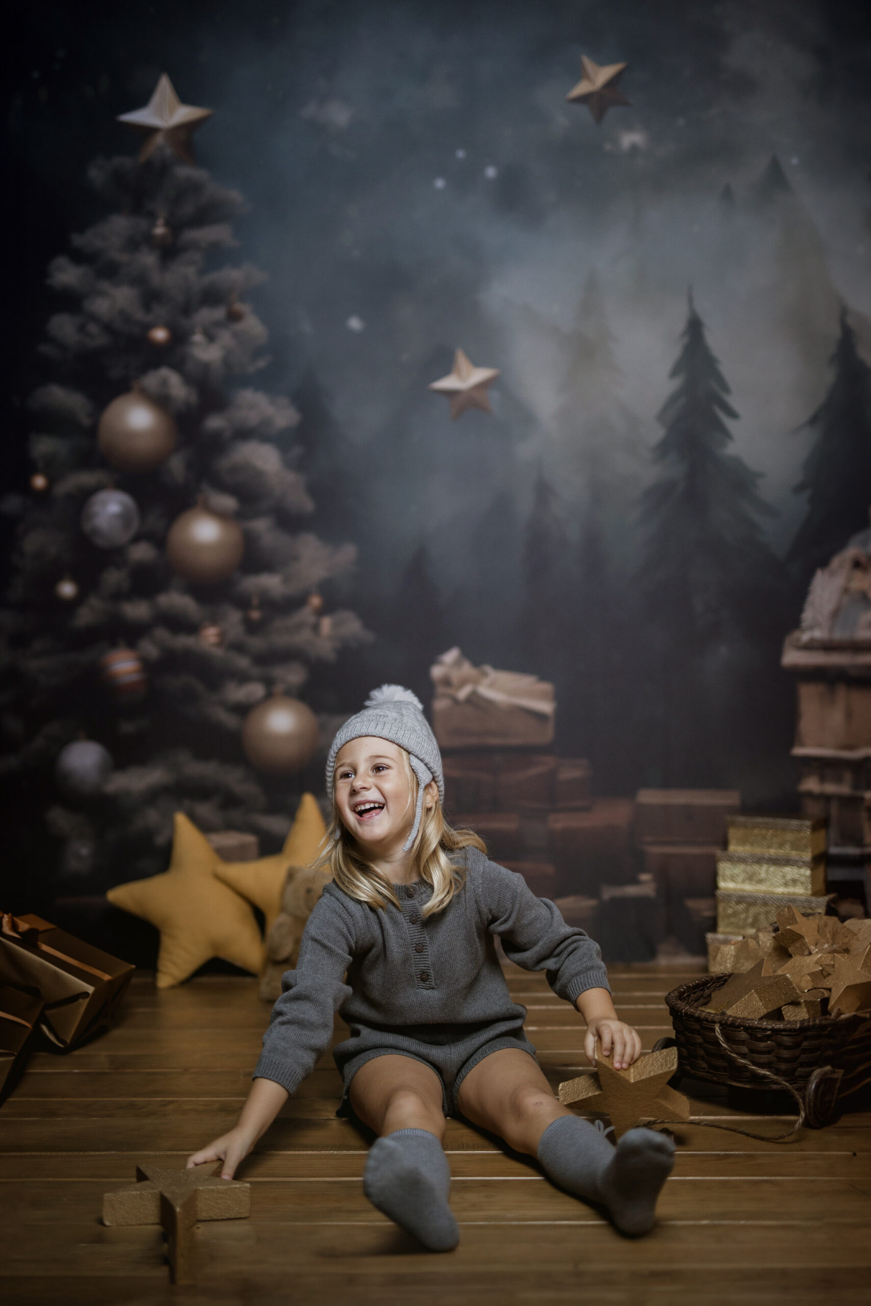 En nuestro estudio, hemos creado un ambiente lleno de calidez, luces brillantes y decoraciones que harán que tanto los niños como los adultos se sientan en un verdadero cuento de Navidad. Cada sonrisa, cada mirada de sorpresa y esa chispa de felicidad en los ojos de los más pequeños serán capturadas con la delicadeza y el cariño que merecen estos momentos inolvidables.