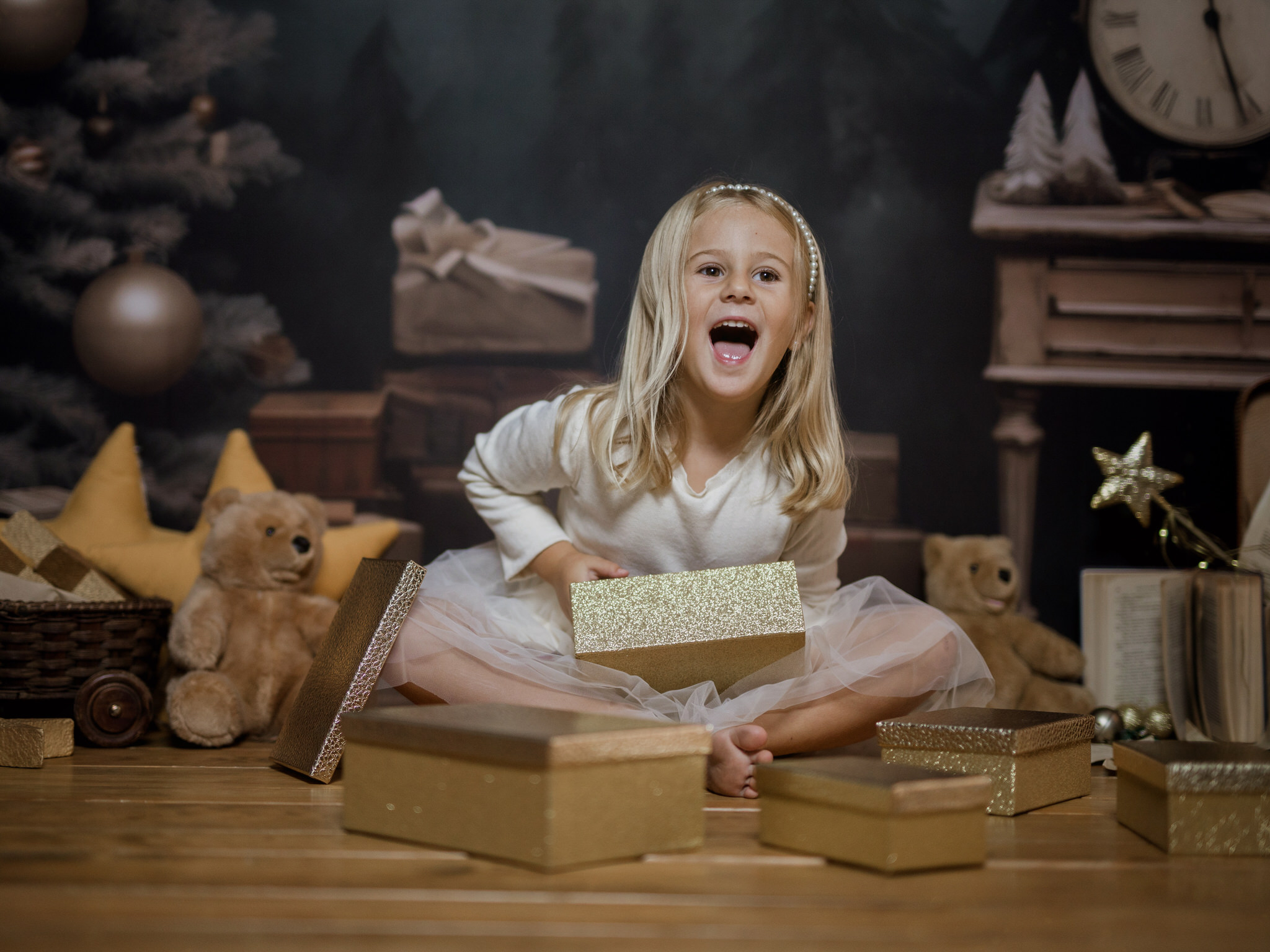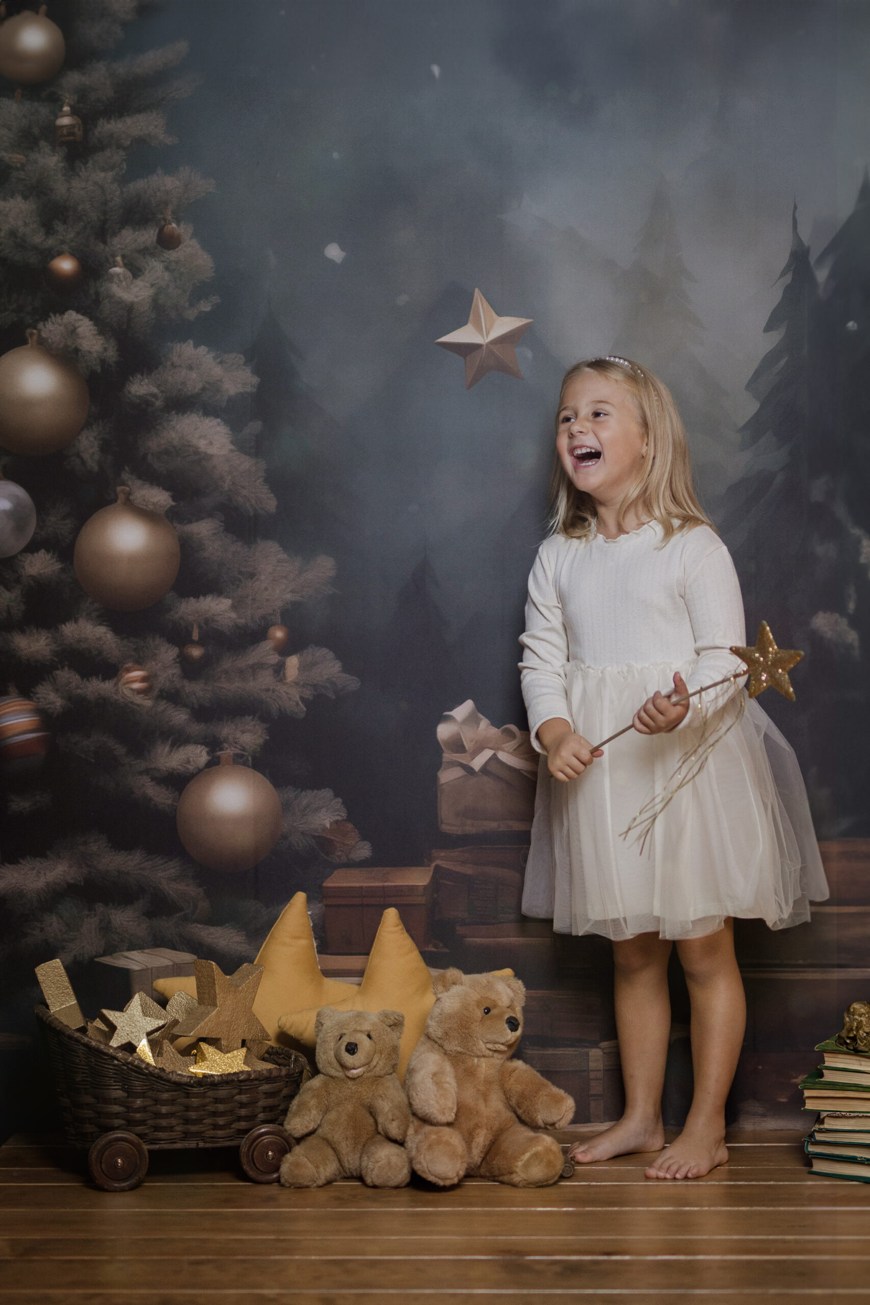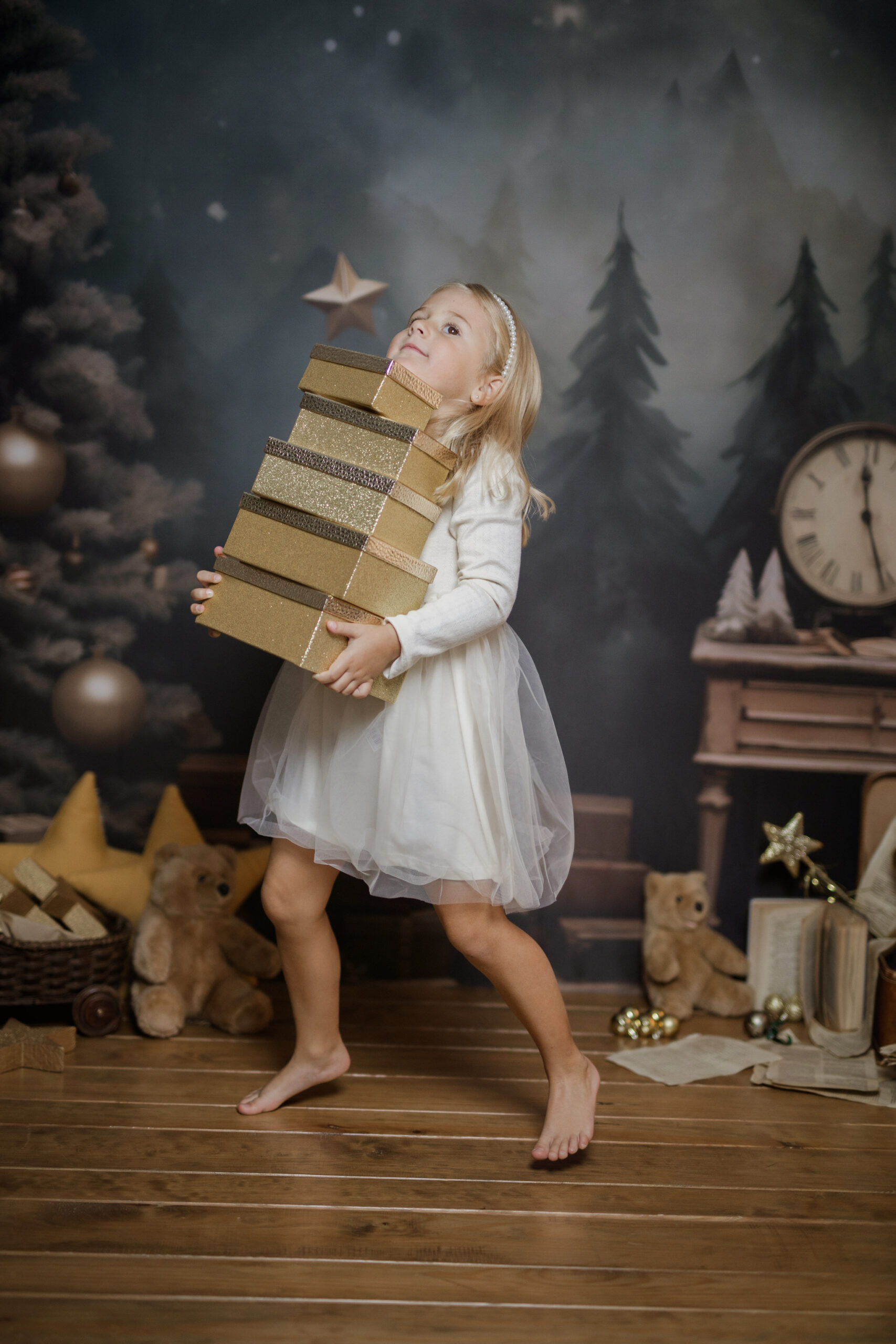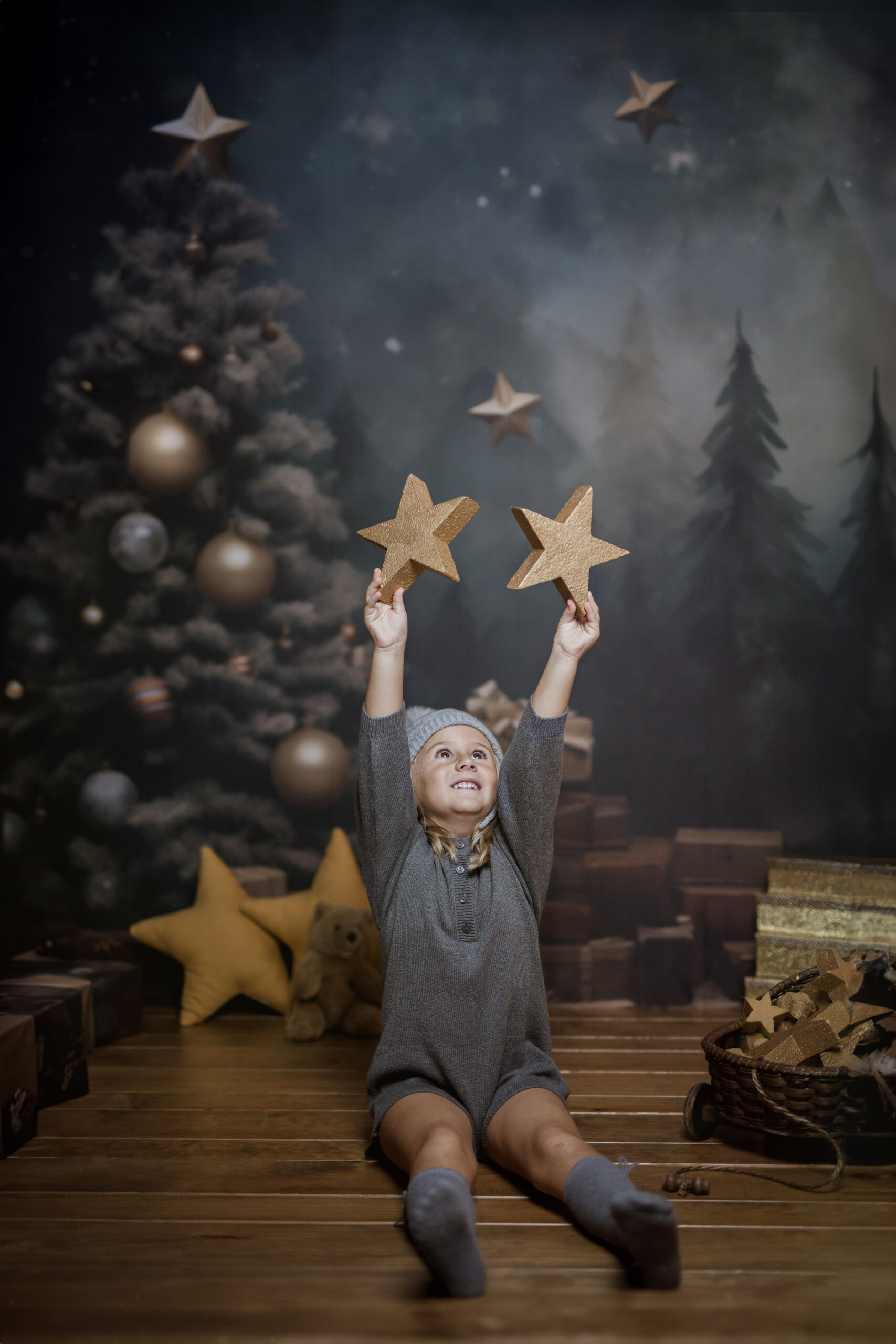 En nuestro estudio, hemos creado un ambiente lleno de calidez, luces brillantes y decoraciones que harán que tanto los niños como los adultos se sientan en un verdadero cuento de Navidad. Cada sonrisa, cada mirada de sorpresa y esa chispa de felicidad en los ojos de los más pequeños serán capturadas con la delicadeza y el cariño que merecen estos momentos inolvidables.