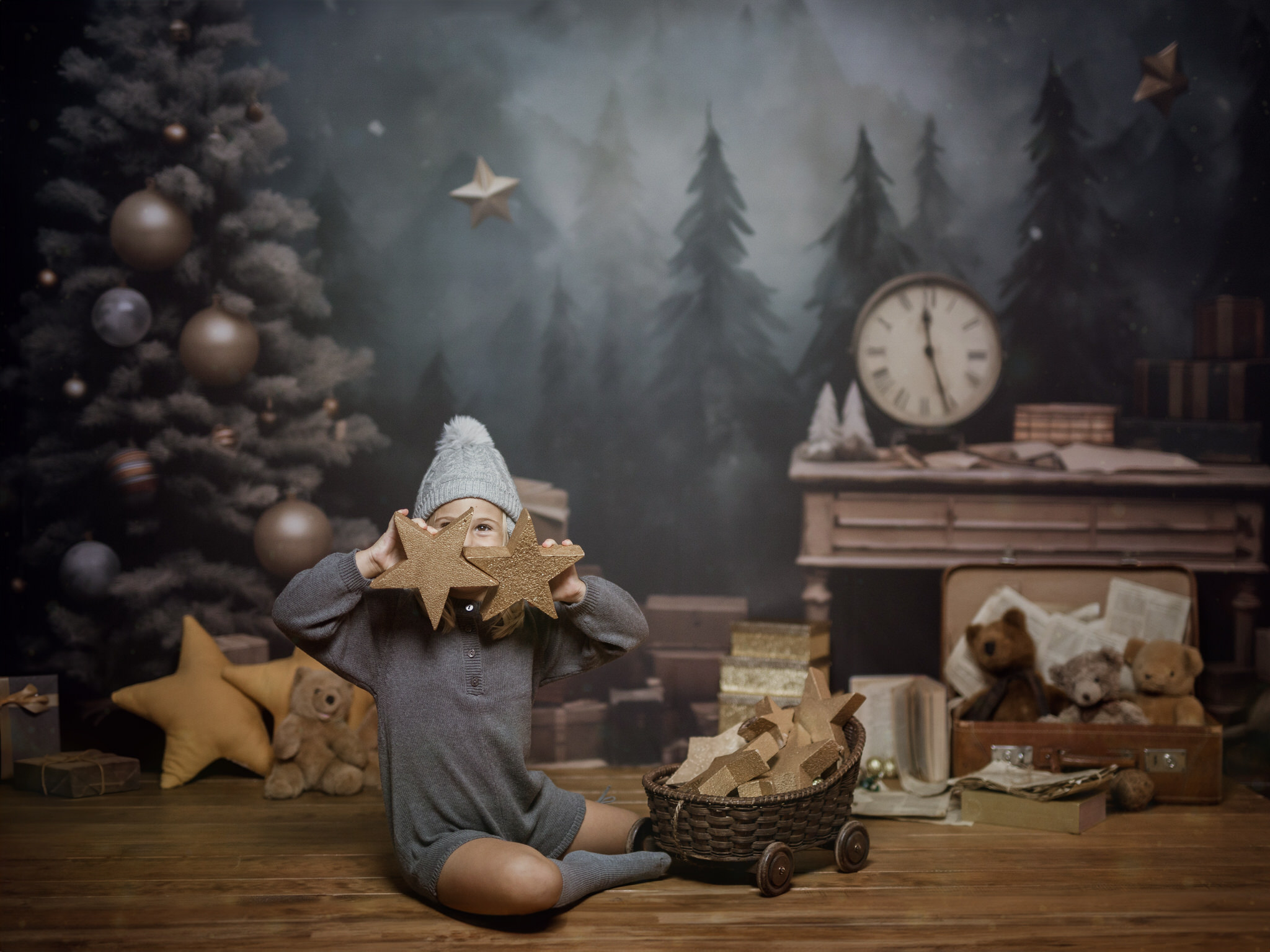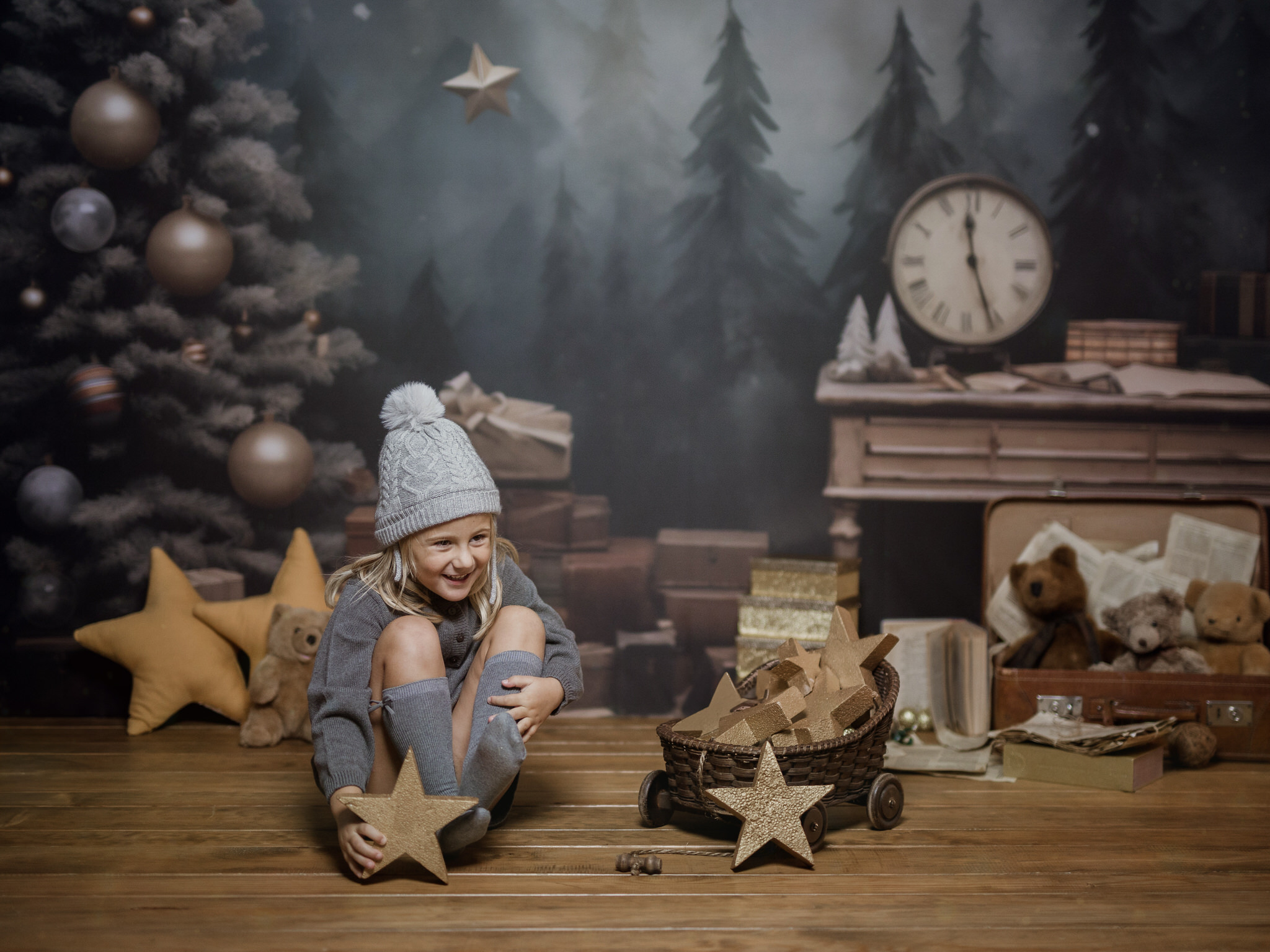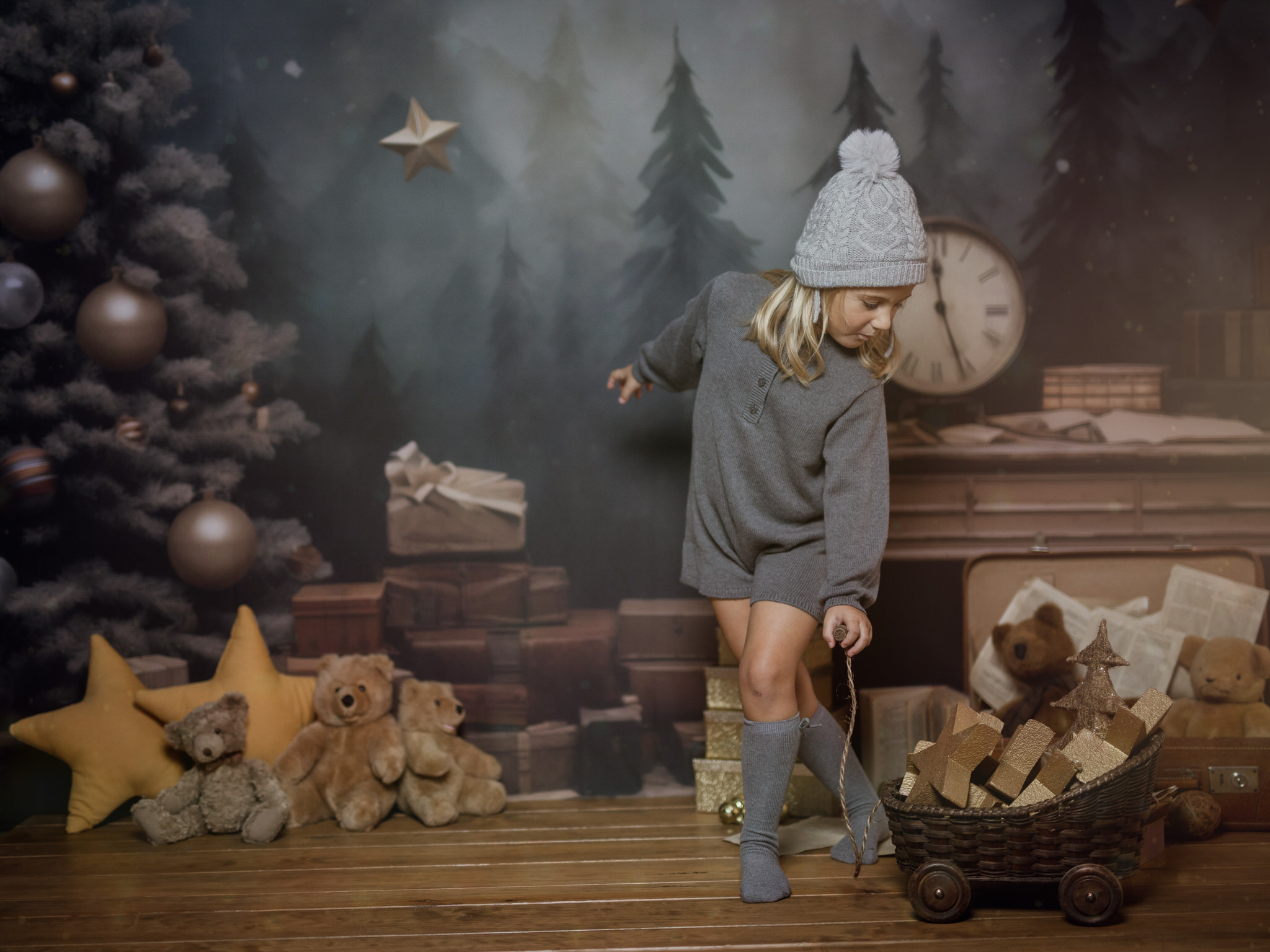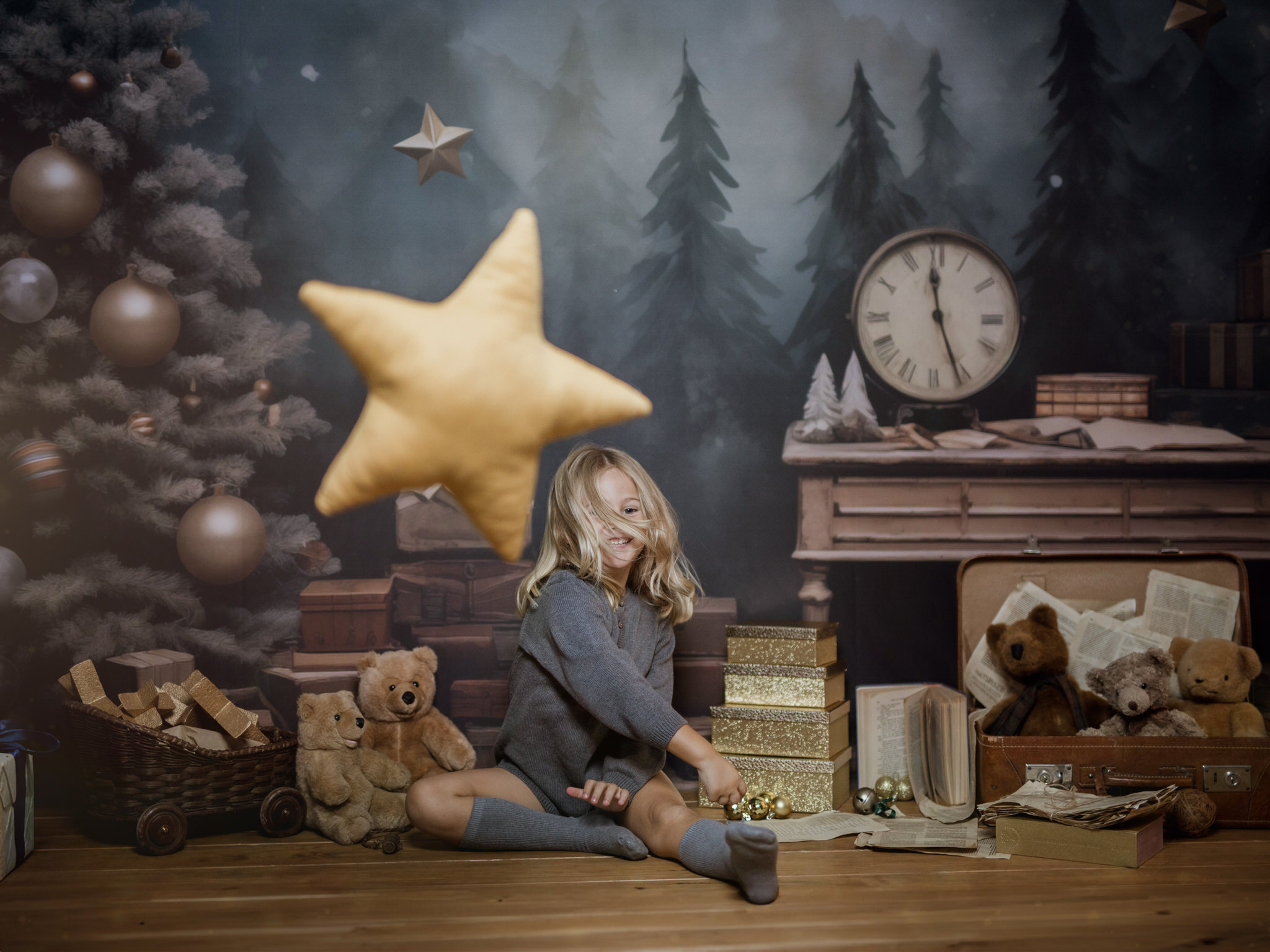 En nuestro estudio, hemos creado un ambiente lleno de calidez, luces brillantes y decoraciones que harán que tanto los niños como los adultos se sientan en un verdadero cuento de Navidad. Cada sonrisa, cada mirada de sorpresa y esa chispa de felicidad en los ojos de los más pequeños serán capturadas con la delicadeza y el cariño que merecen estos momentos inolvidables.