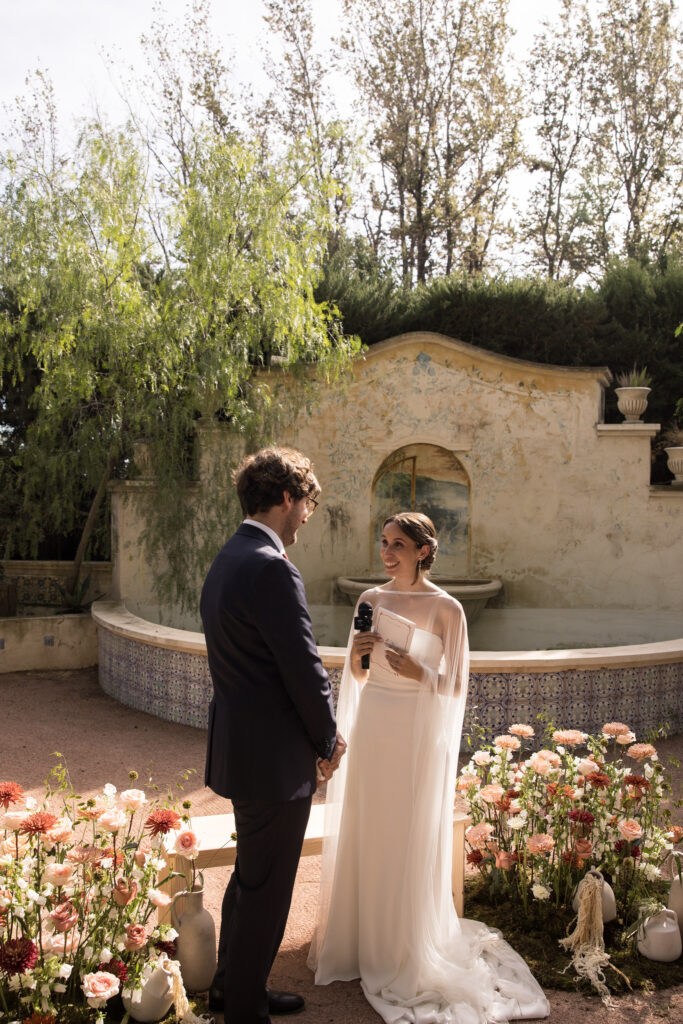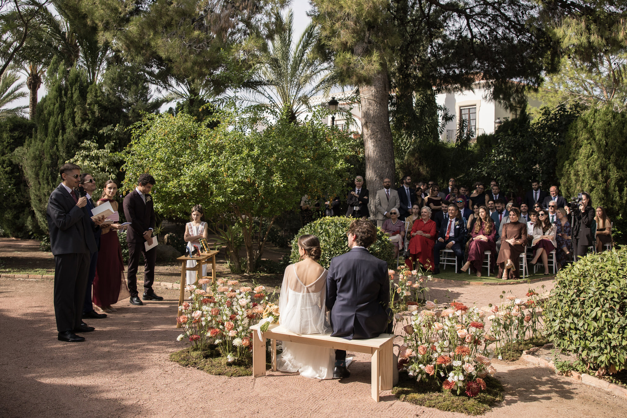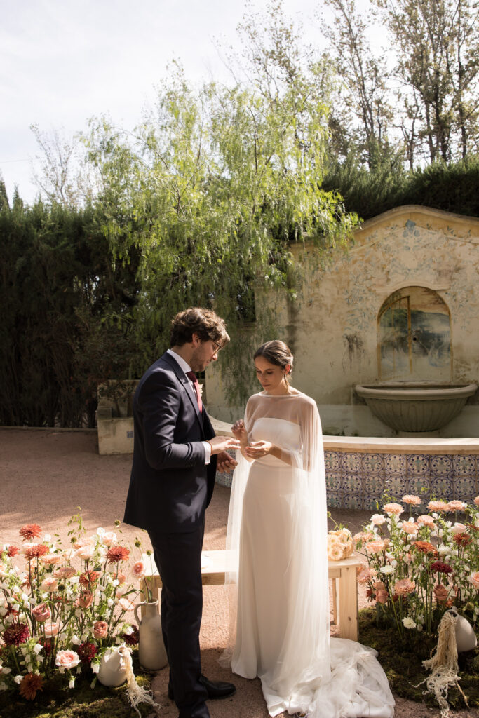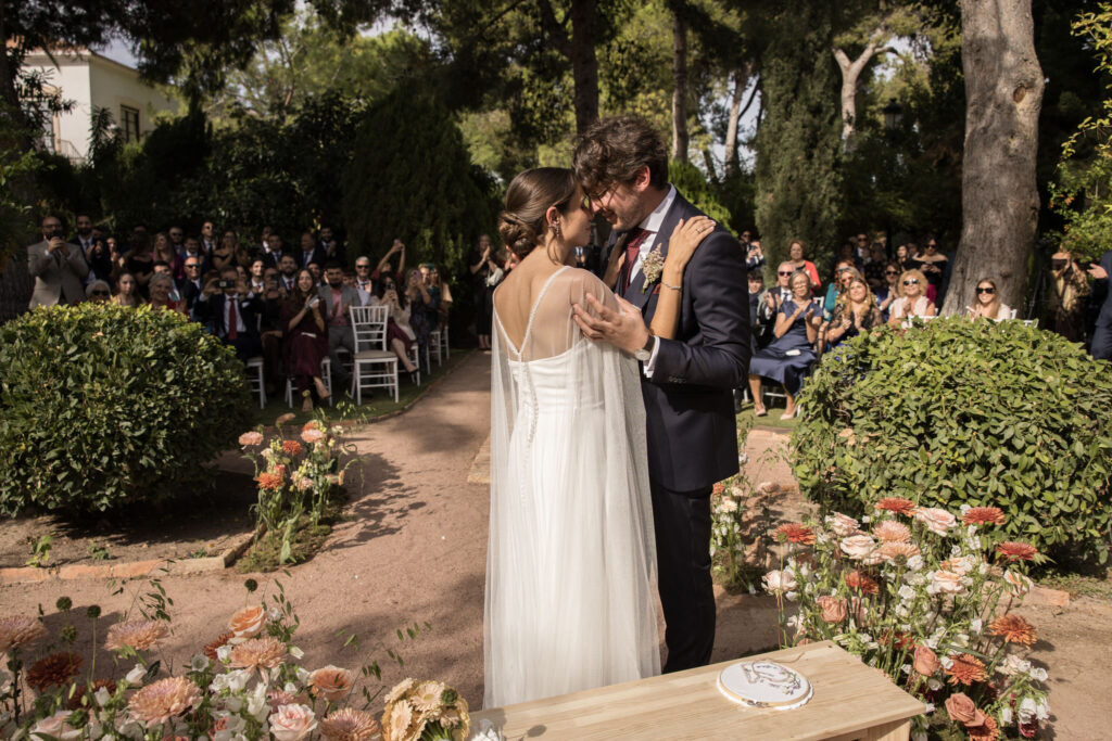 La ceremonia se celebró en Finca Mariana, uno de los espacios más bonitos para una boda en la provincia de Alicante. El entorno natural, la luz y una decoración de ceremonia cuidada al detalle crearon un ambiente mágico y muy especial, perfecto para una boda llena de emoción.