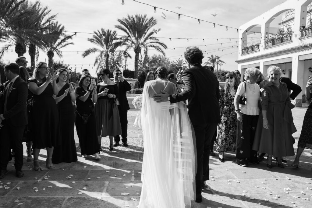 Durante todo el día me centré en capturar los instantes reales y emotivos: miradas cómplices, abrazos, lágrimas y risas que reflejan cómo se vivió su boda. Este tipo de fotografía de boda natural y espontánea es la base de mi trabajo como fotógrafo de boda en Alicante, pensado para parejas que quieren disfrutar de su día sin preocuparse por la cámara.