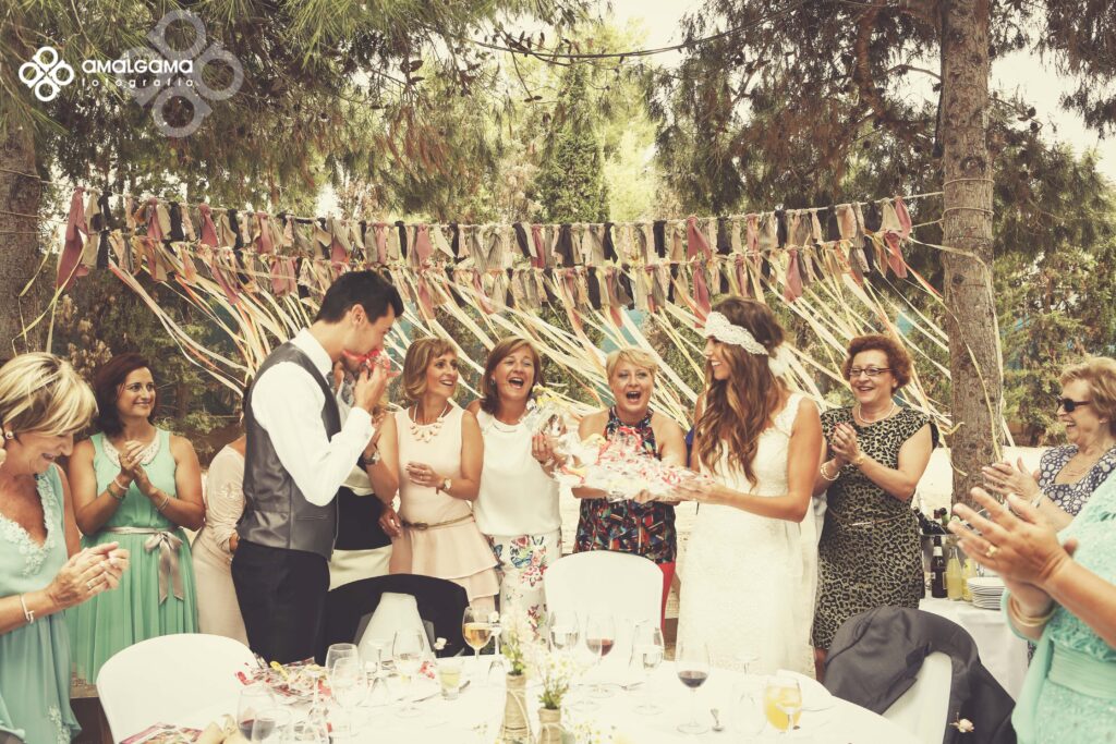 La comida servida por El Catering Ya, y la decoración y ramo de la novia de la Floristería de Valentina.