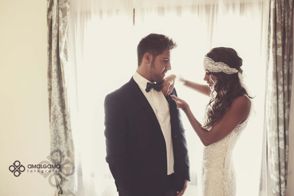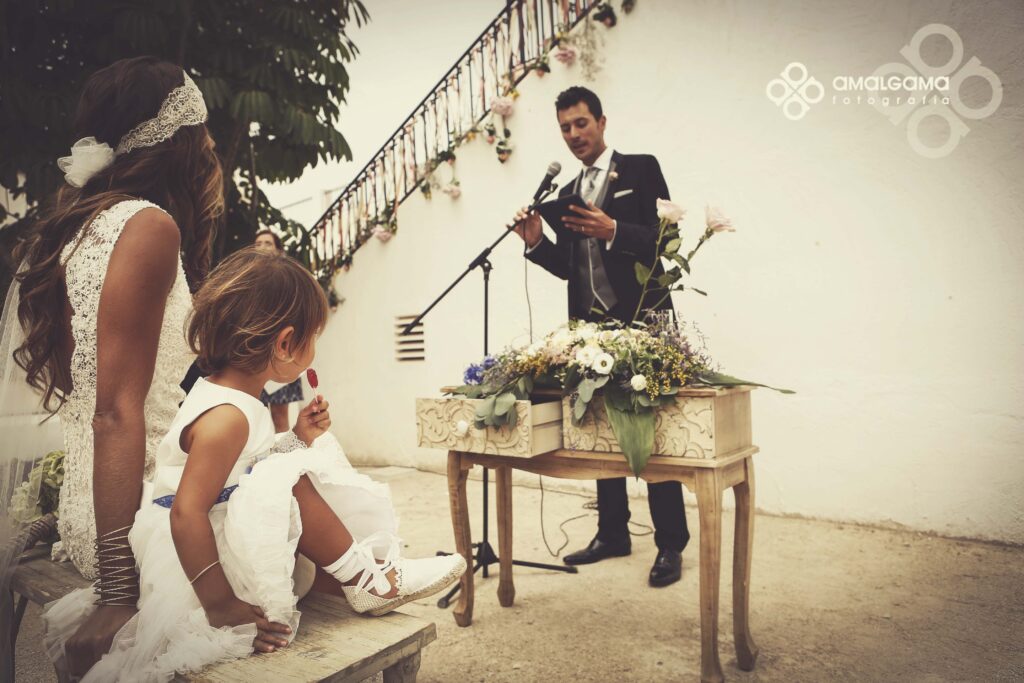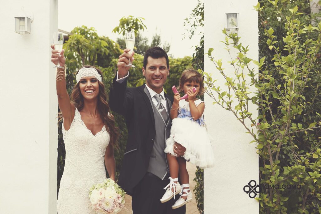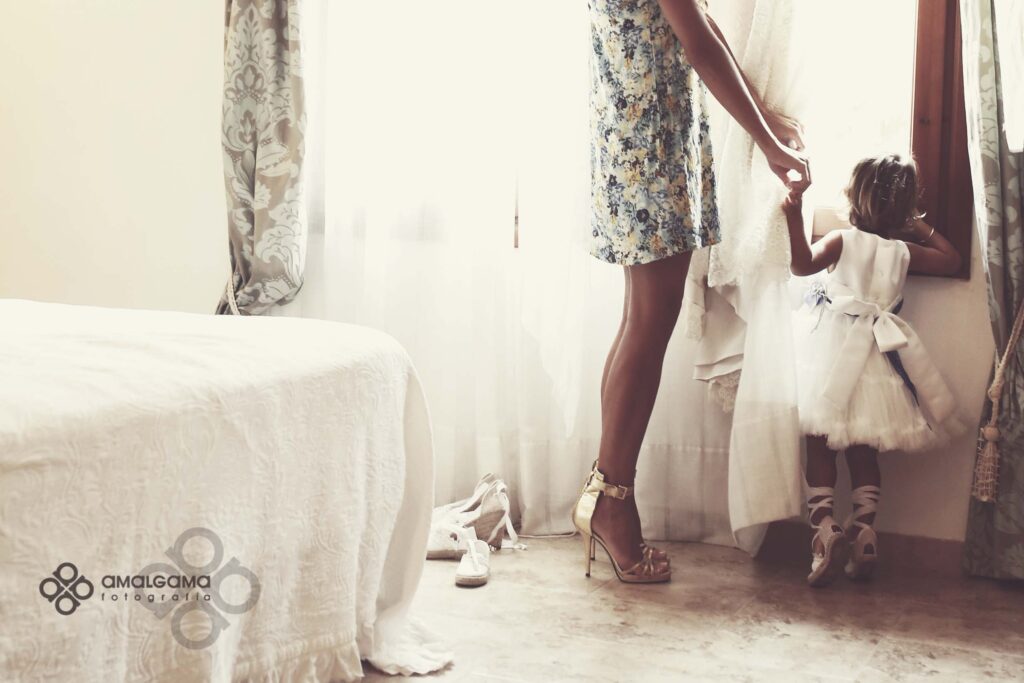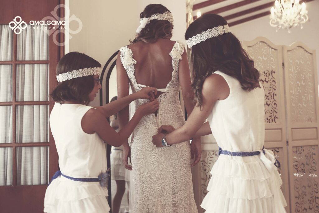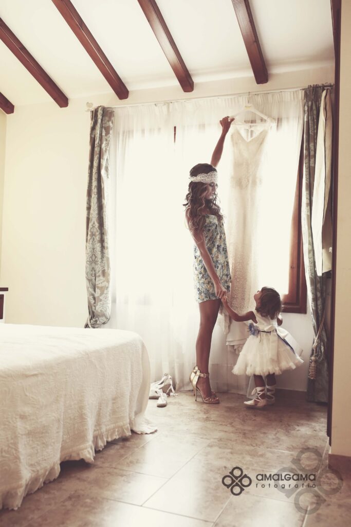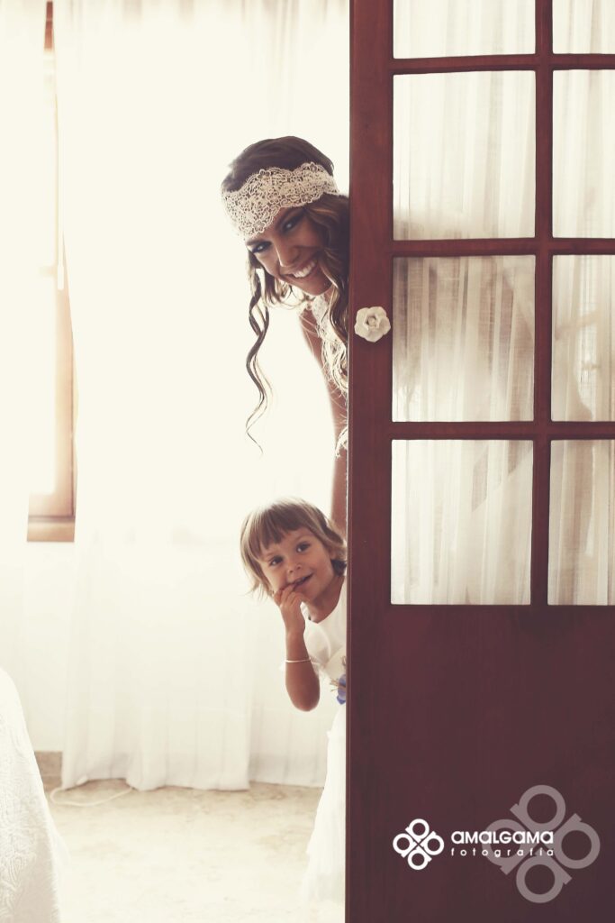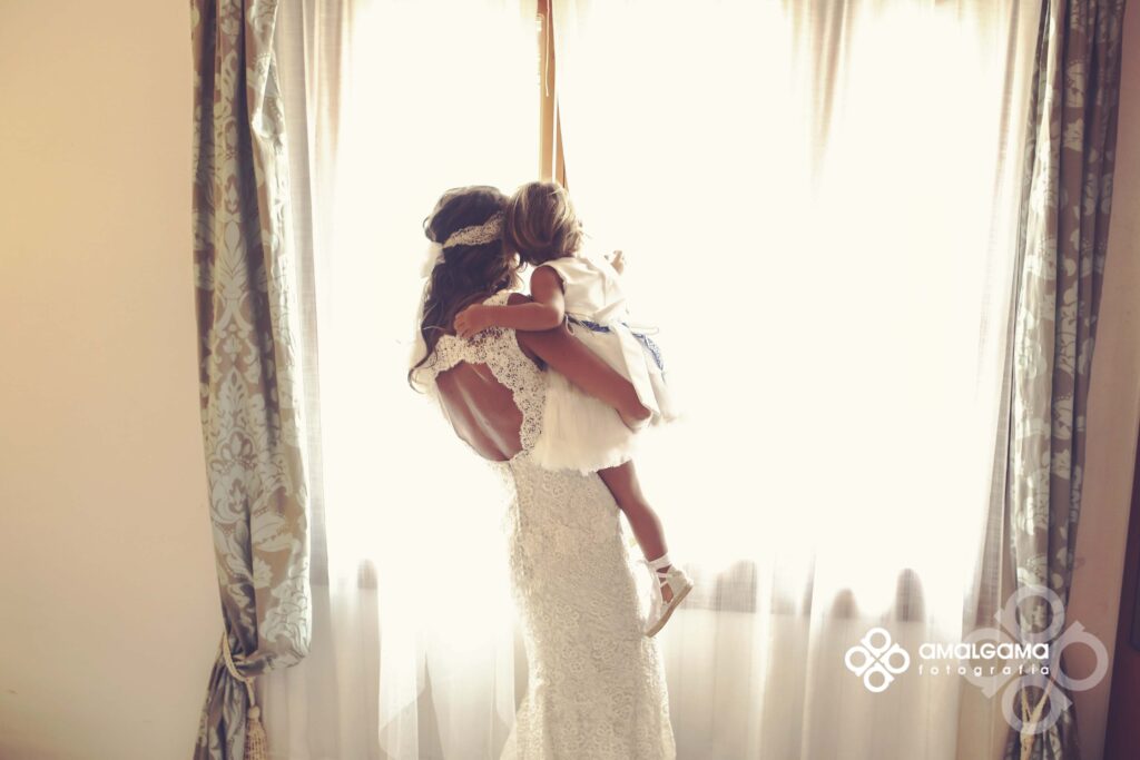 Una preciosa boda celebrada en el Huerto de la Luz, allí se vistieron en la suite de la preciosa casa colonial, donde la pequeña Elsa protagonizó momentos divertidos y tiernos junto a su madre.