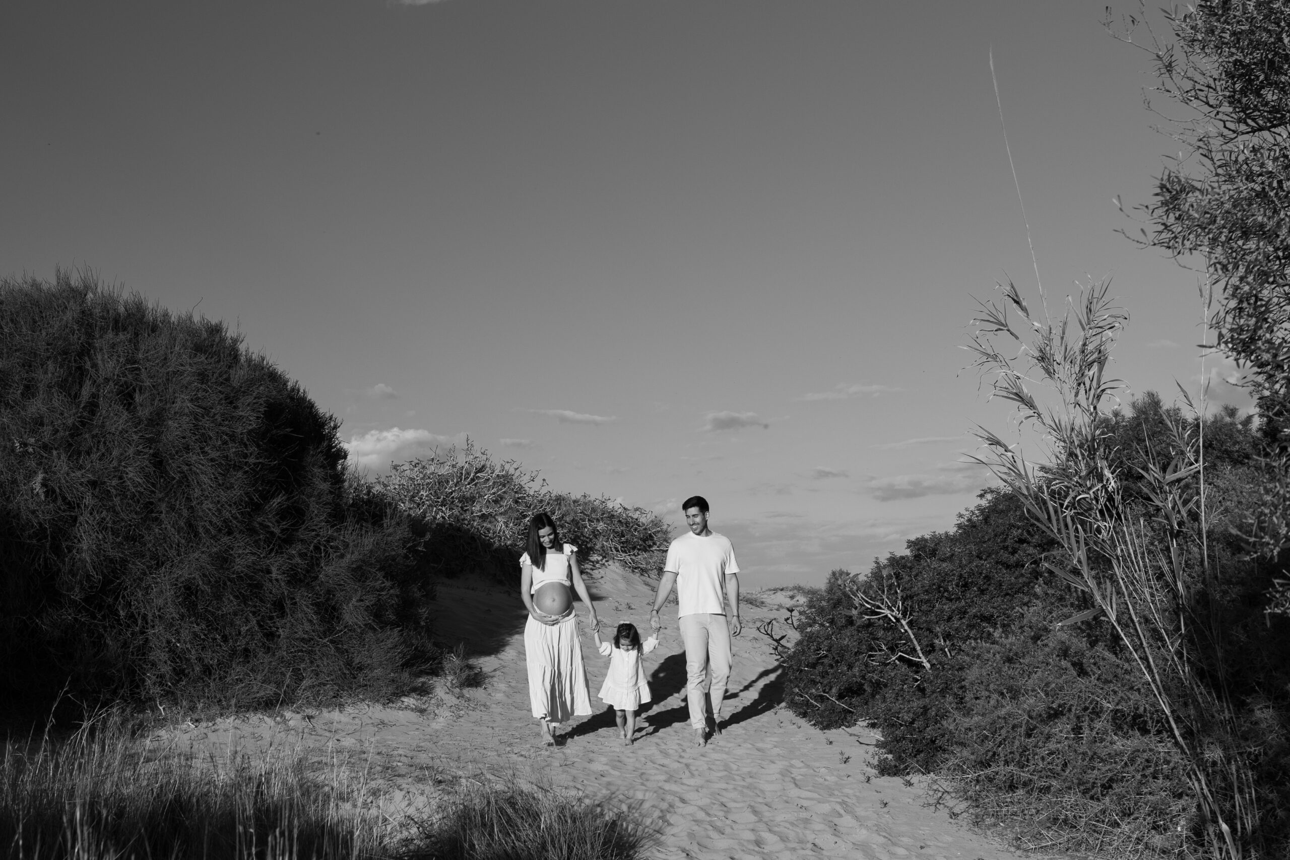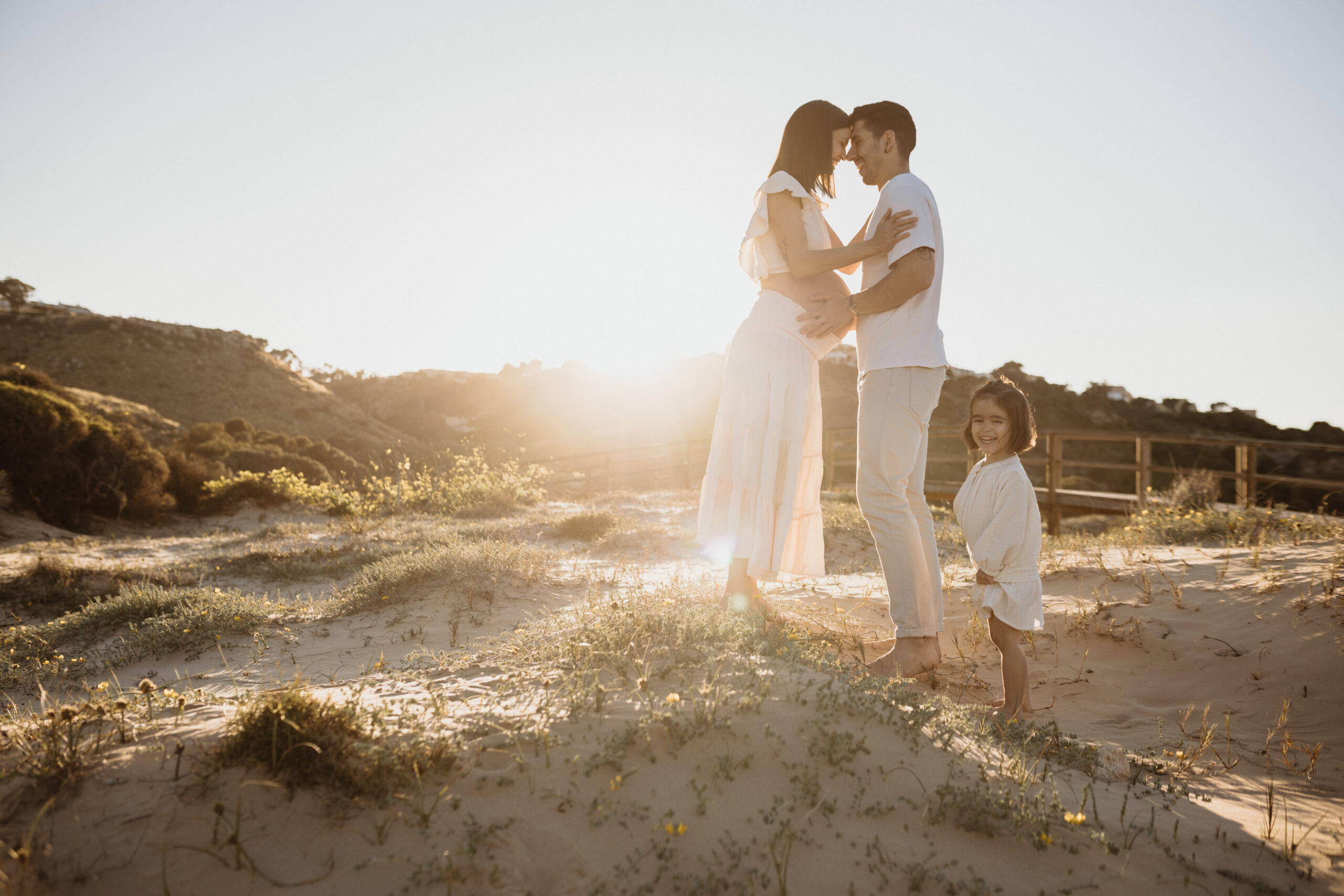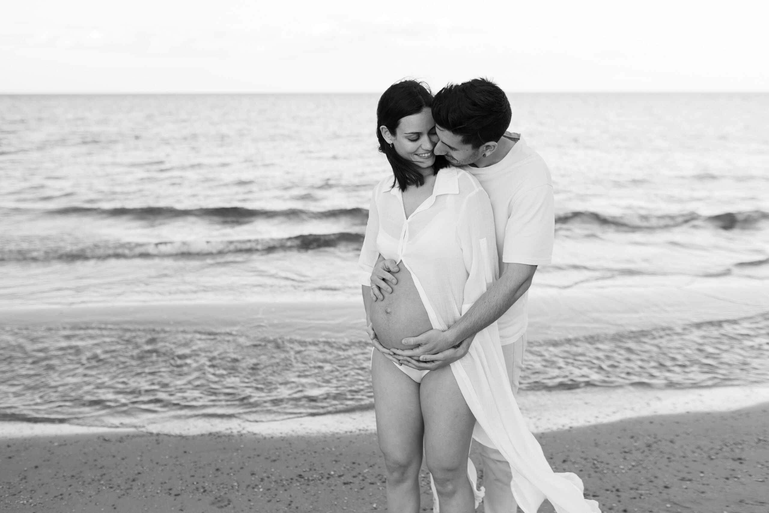 En este caso, os cuento la historia de Adrián y Tania. Hicimos su sesión de embarazo en la playa de Arenales del Sol, muy cerquita de Elche, al atardecer. Porque sí, la luz dorada del final del día hace magia. No hubo posados raros ni nada forzado: solo ellos, su conexión, y muchas risas. Naturales, tal cual son. Esa es mi manera de trabajar como fotógrafo de embarazo en Elche y alrededores: capturar lo auténtico, sin filtros ni artificios.