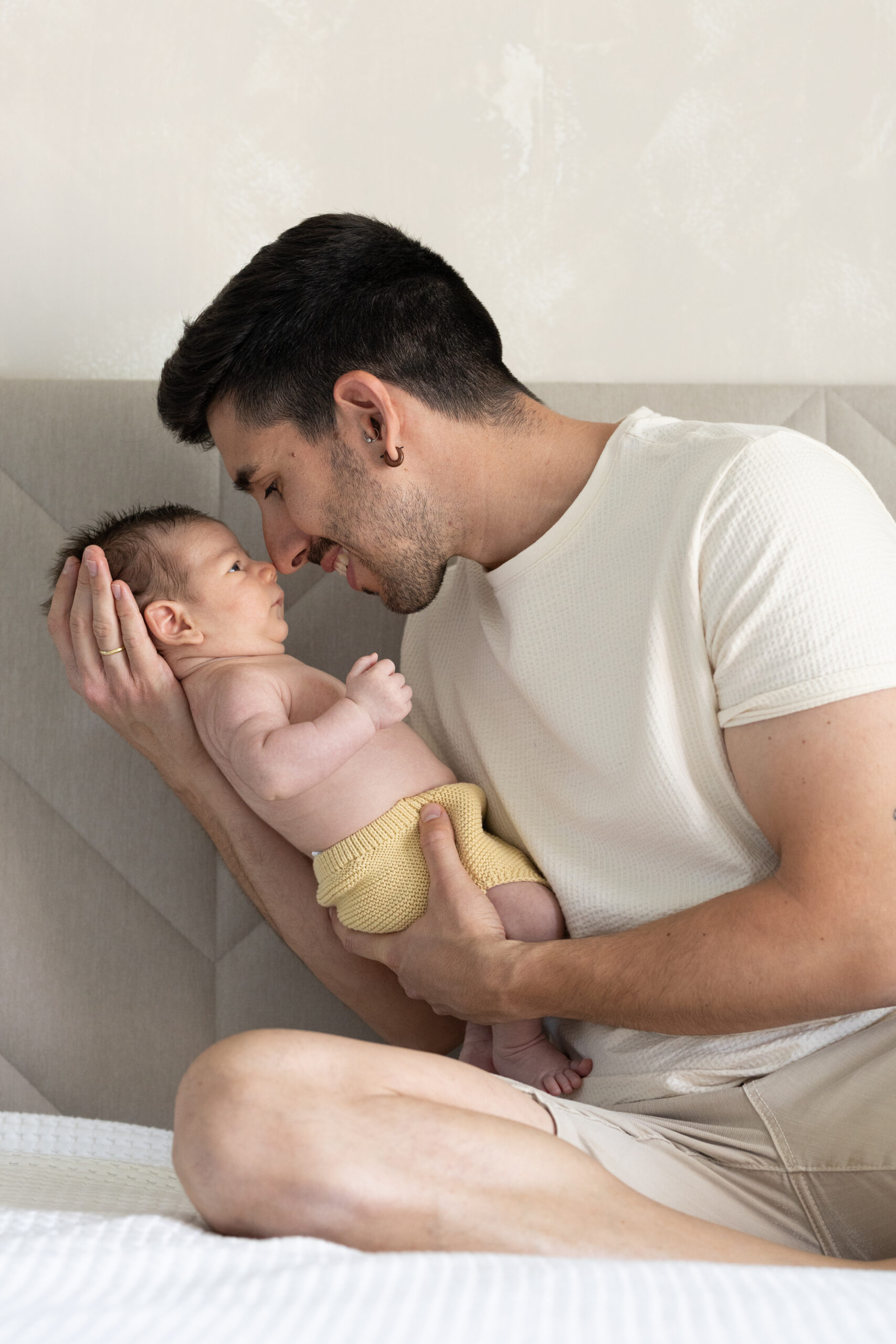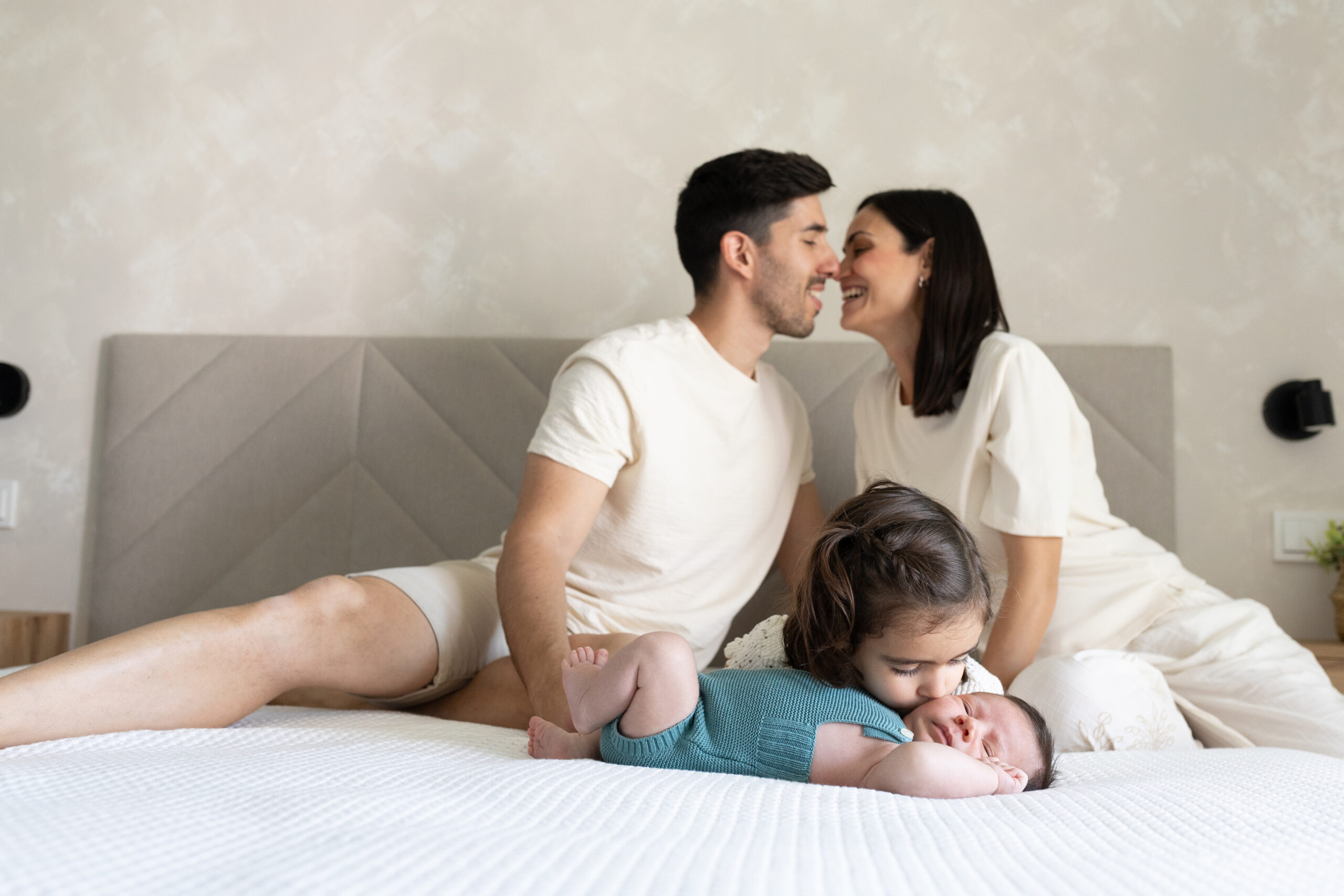 Y unas semanas después… ¡tachán! Llega el peque a casa. Y ahí estuvimos también, en su hogar, sin prisas, con calma, para hacer un reportaje de recién nacido en casa. Con su luz, su cama, su olor a bebé recién llegado. Fotos reales, de esas que te transportan a ese momento con solo mirarlas. Porque la fotografía familiar no es solo una imagen bonita, es un pedazo de historia.
