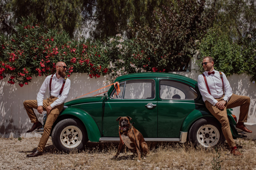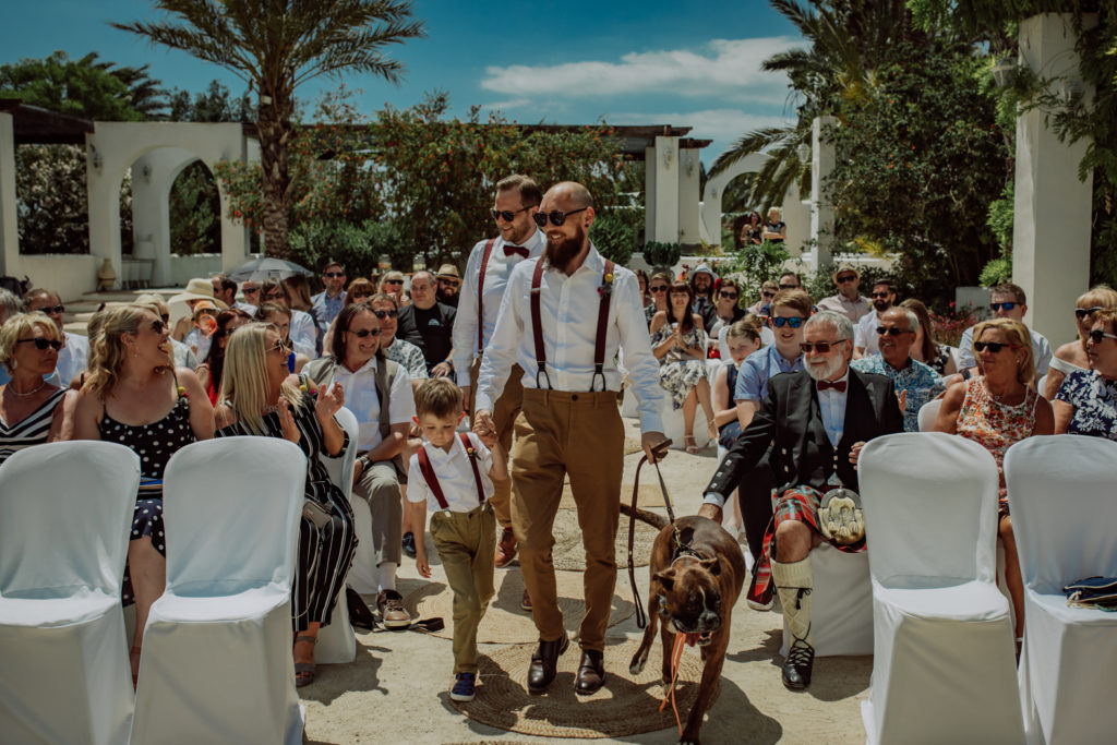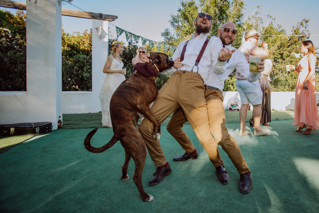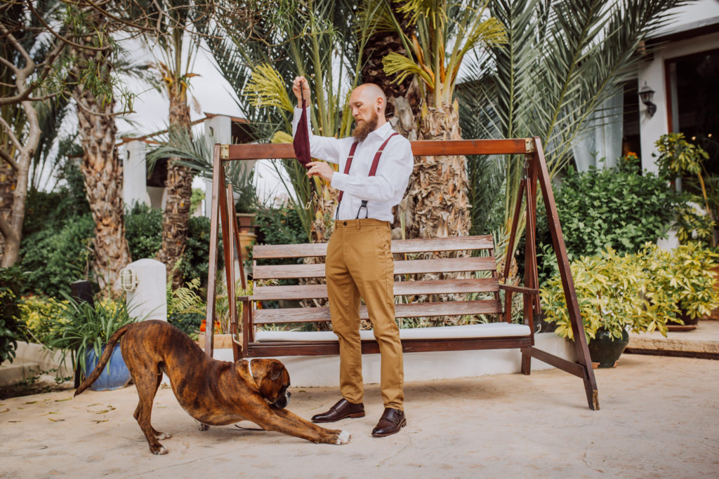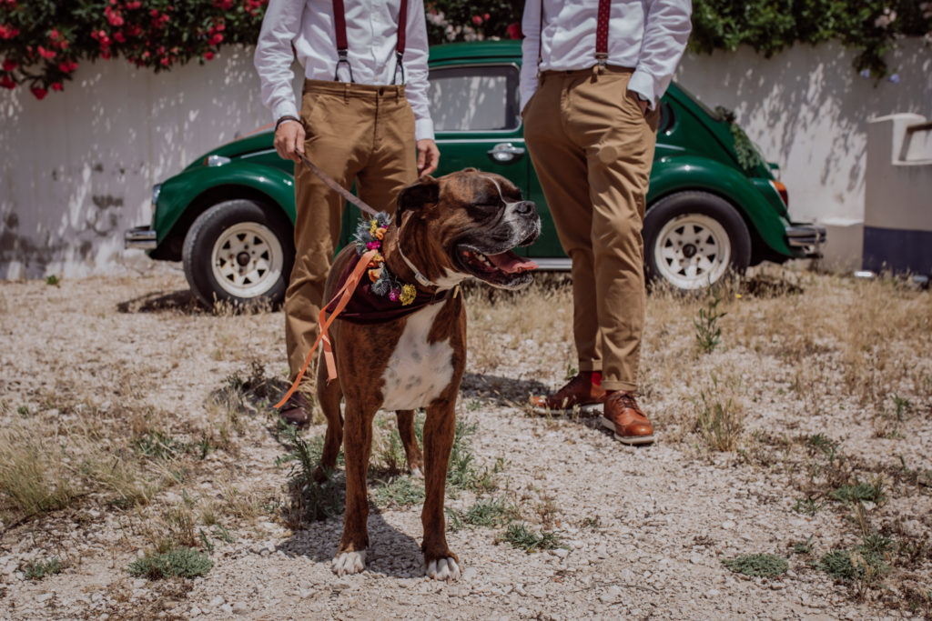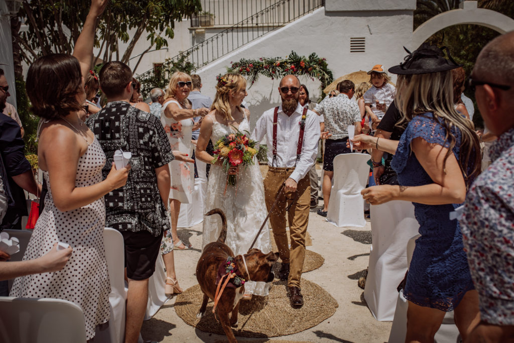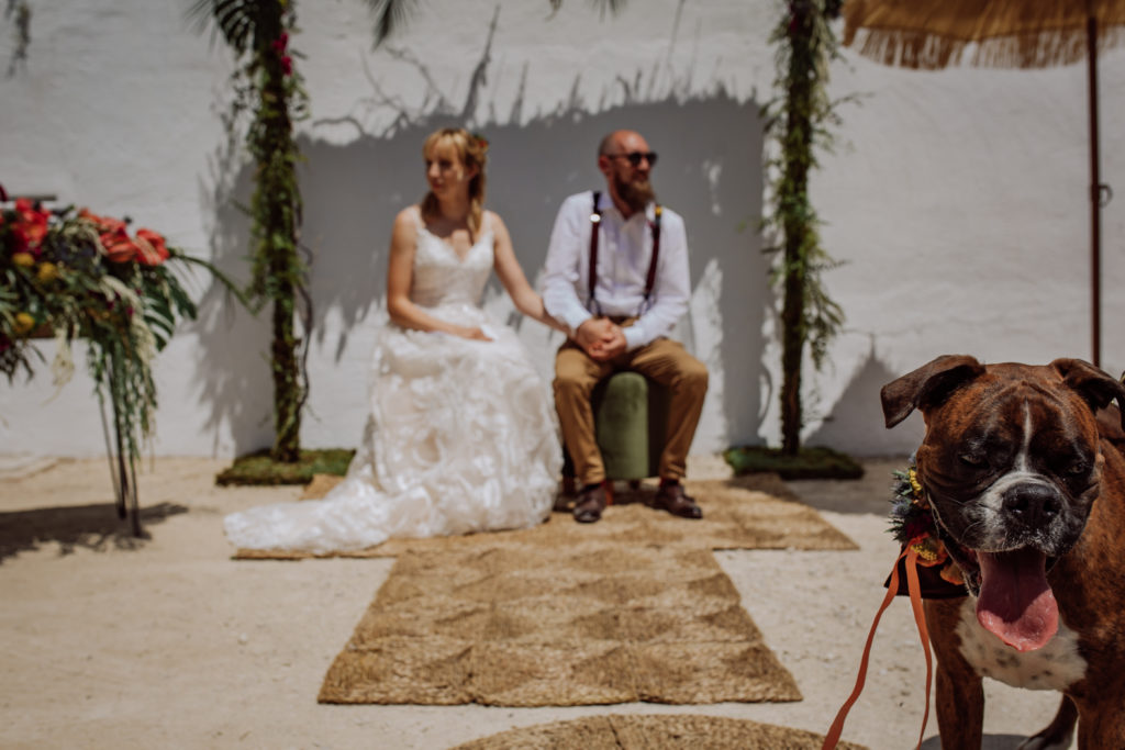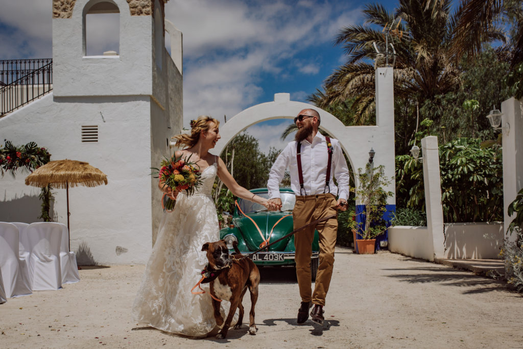 Una gran fiesta sería la palabra para definir la boda de Wayne y Daisy, y bueno… Un gran protagonista que hay que destacar Darwin (el perro superstar). Íntima y con sus familiares y amigos venidos de diferentes lugares. Celebrada en la finca el Huerto de la Luz, los novios se prepararon en las habitaciones de esta casa colonial situada en Elche.