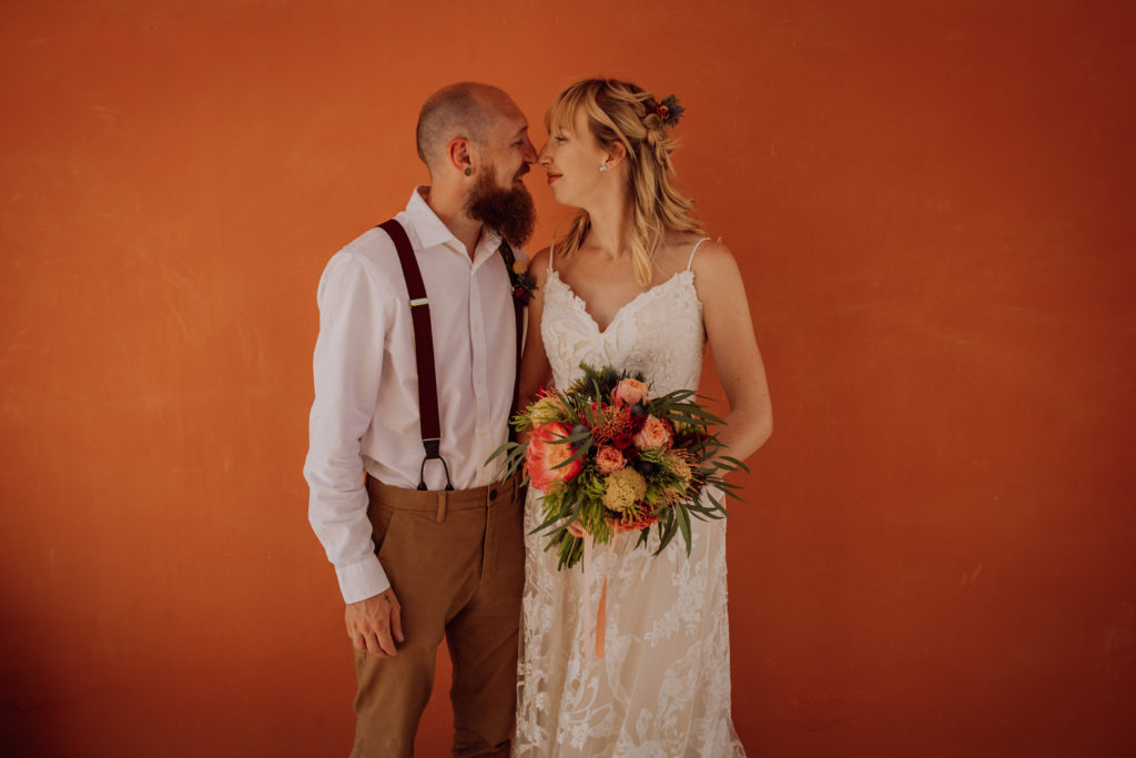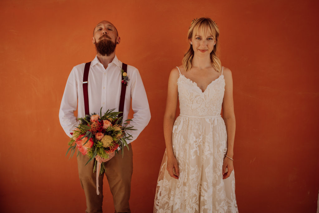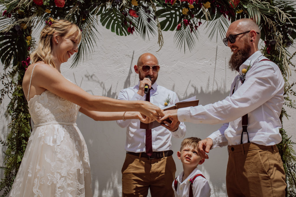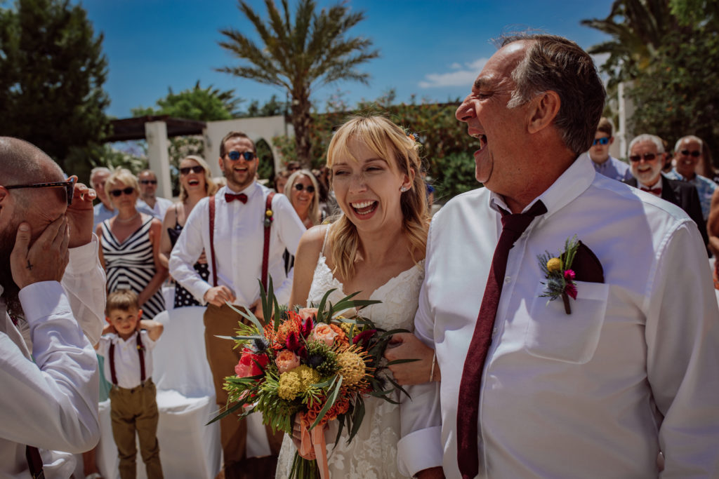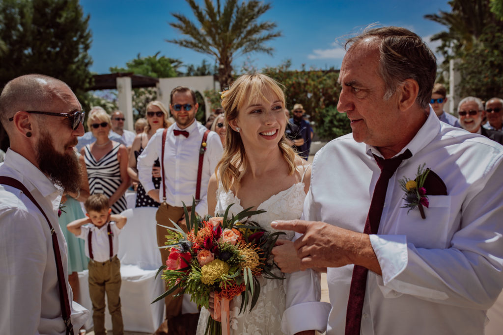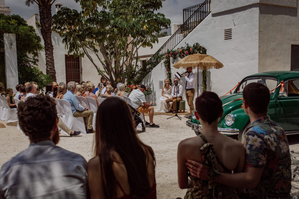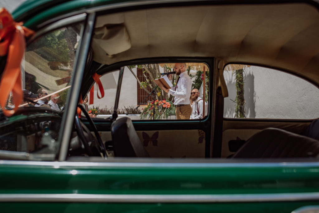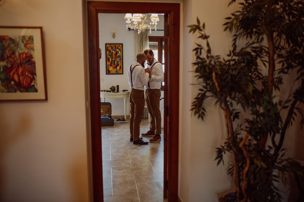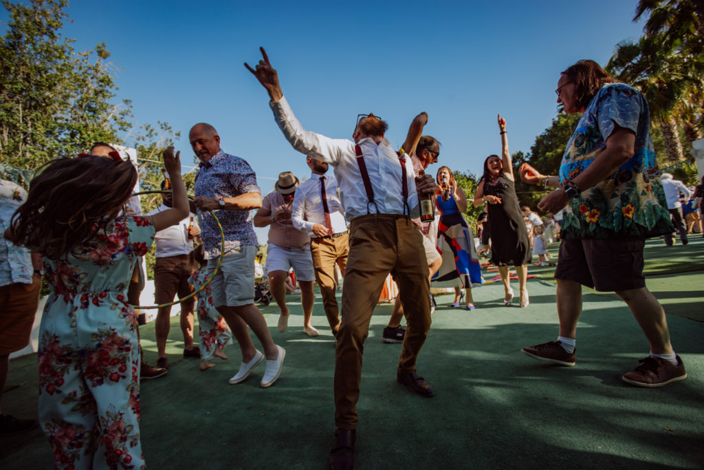 Una gran fiesta sería la palabra para definir la boda de Wayne y Daisy, y bueno… Un gran protagonista que hay que destacar Darwin (el perro superstar). Íntima y con sus familiares y amigos venidos de diferentes lugares. Celebrada en la finca el Huerto de la Luz, los novios se prepararon en las habitaciones de esta casa colonial situada en Elche.