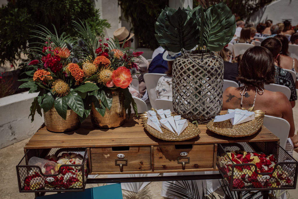 La ceremonia y ramo de novia realizado por la Floristería de Valentina.